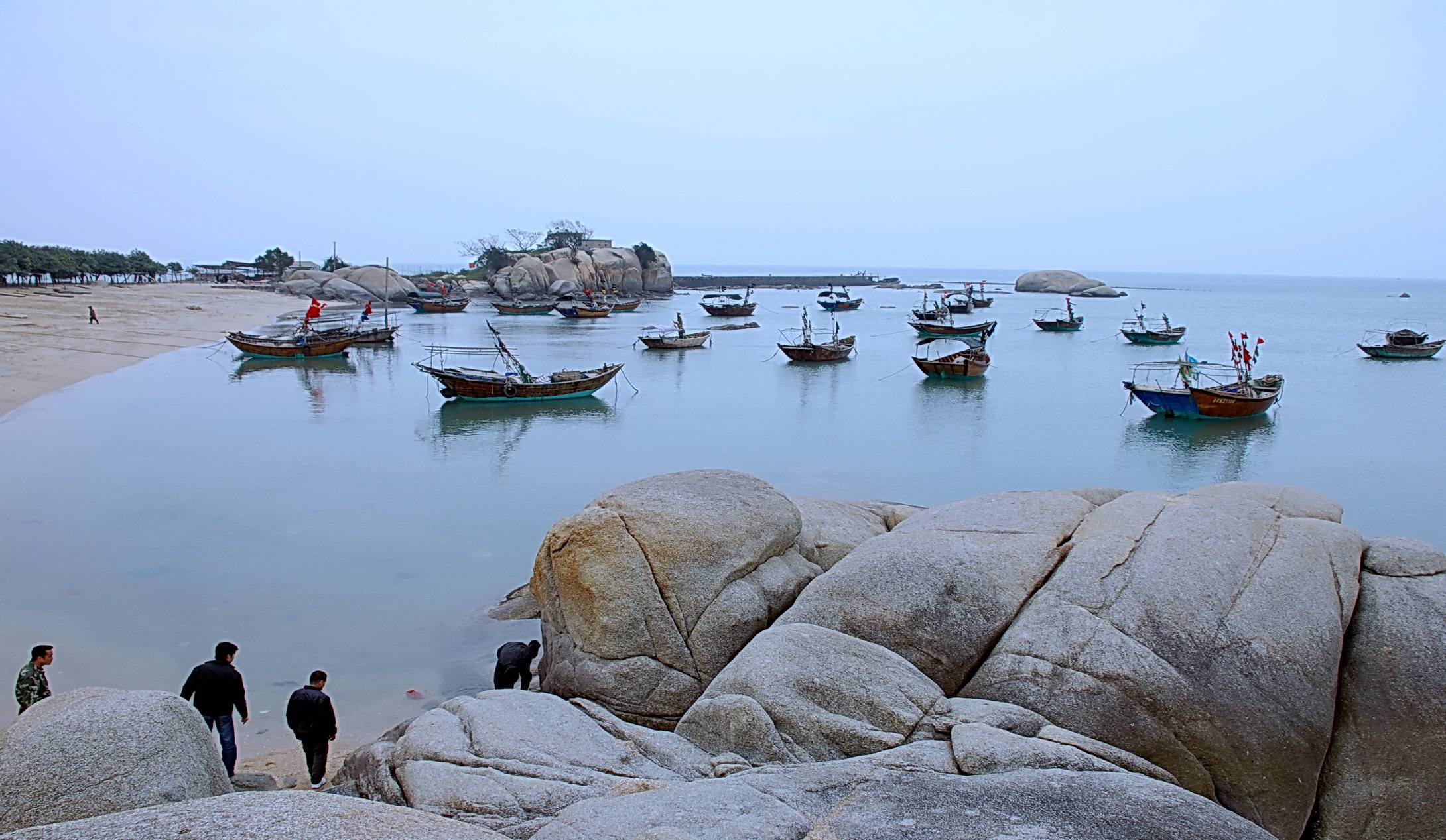 三娘湾除了海豚,还有很多好玩的地方的,比如赶海、逛沙滩,体验渔民的生活。沙滩很软很细,非常适合情侣打情骂俏。男票是南方人,对体验渔民生活无感,但对我就很有吸引力,看着他们把鱼网上来,活的,很新鲜,就觉得很好玩,在“调戏”一只大螃蟹的时候,还差点被它“调戏”了。