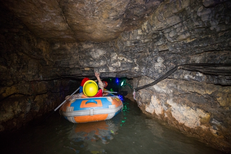 华北地区唯一的山洞漂流,长达5华里,即使干涸季节也能看到哗哗流水声。乘皮划艇可漂流而进,漂流而出。经过七个山洞,高的丈许,矮的顶头而过,有些地方还需要半躺在游艇上才能通行;在幽深的洞中漂过,时而山穷水尽,时而柳暗花明,穿梭于此好似历经了七天七夜,山洞中还有一种独特的蓝蜻蜓,再配上隧洞内声光电,会有一种探奇之感。