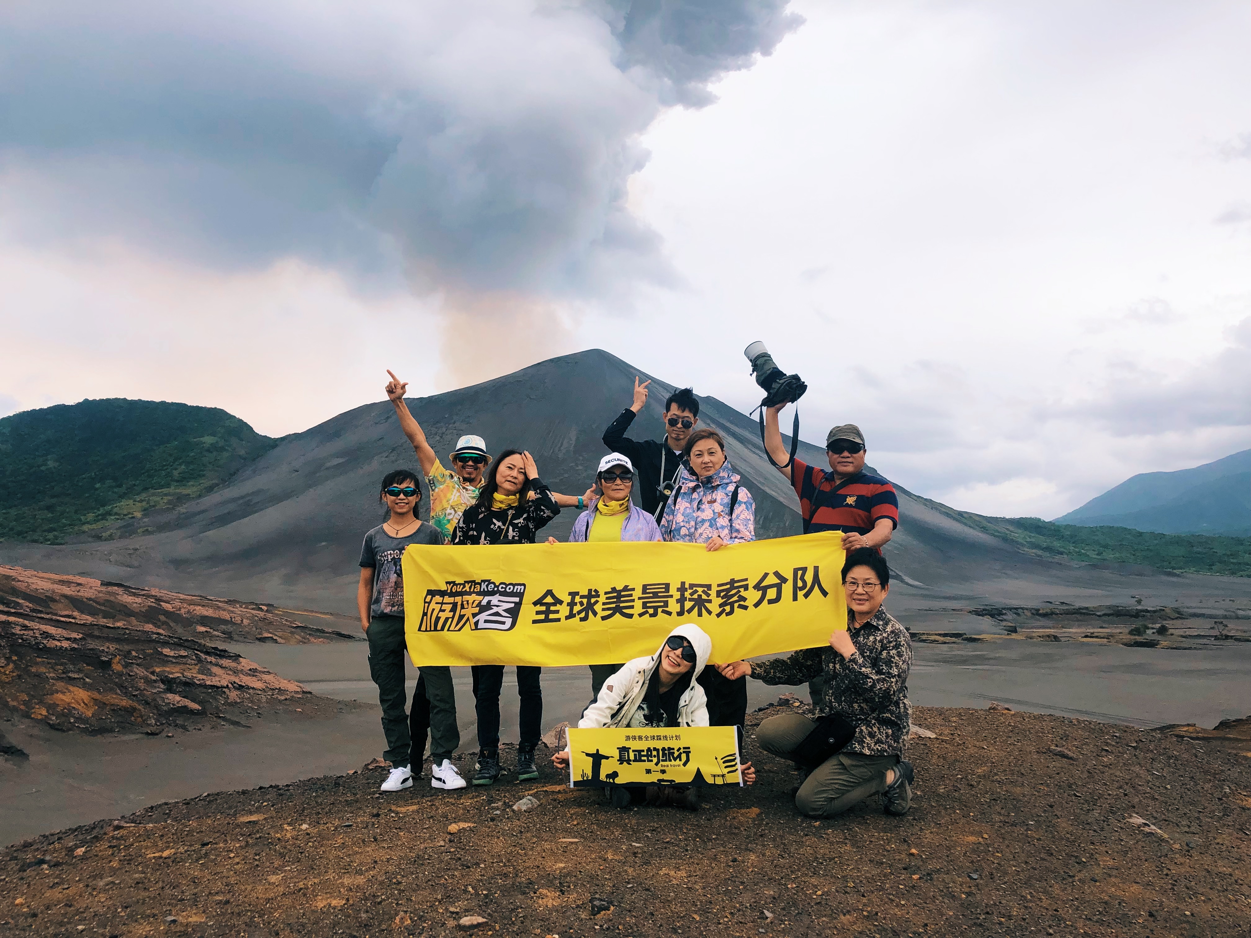 当然在正式前往亚苏尔火山之前,还需要征得当地原始部落酋长的同意,现在已经演变成一个表演活动。当地部落的成员穿着草裙,为我们献上舞蹈和花环,我们队员也开心的加入其中,大家瞬间兴致高昂!最终酋长果然同意了我们的参观请求,并祝福我们今天可以参观顺利。