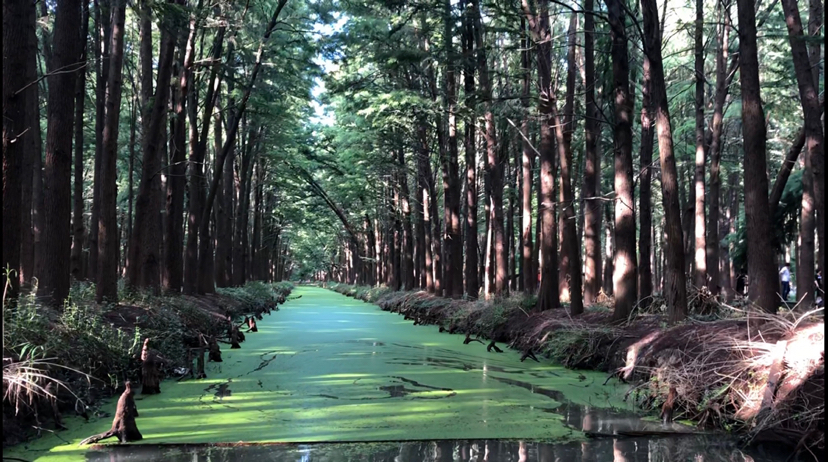 水杉在河道两边郁郁葱葱,阳光洒下影影绰绰,微风透过森林徐徐吹来,我们坐着小船在这个天然氧吧里缓缓行走,好不惬意。