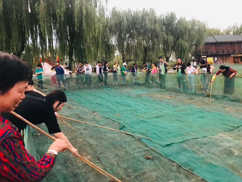 接着我们前往高邮湖的湖心岛也是今晚我们的住宿点,并且是钓螃蟹的活动地。但是由于现在天气还比较热,湖里的螃蟹不愿意爬上岸来所以都是由工作人员先捕好再倒到草地上让大家钓,明显体验感和自己下手捉要差很多。但是等天气再冷一点了蟹也更肥了那时候会更有意思