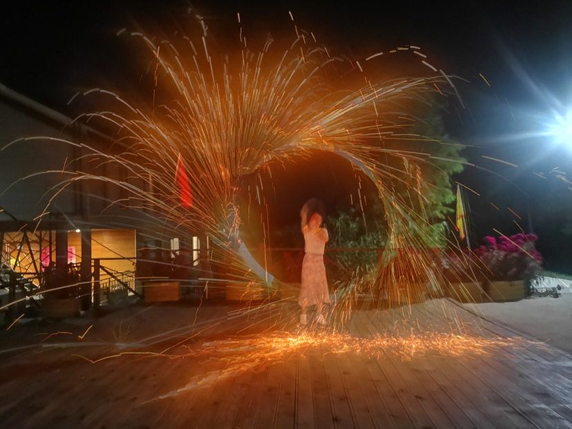 晚上领队带着我们玩起了钢丝棉烟花,看到这种新颖的玩具大小朋友都兴奋起来拍照的拍照,想一试身手的自己上阵。玩的不亦乐乎。