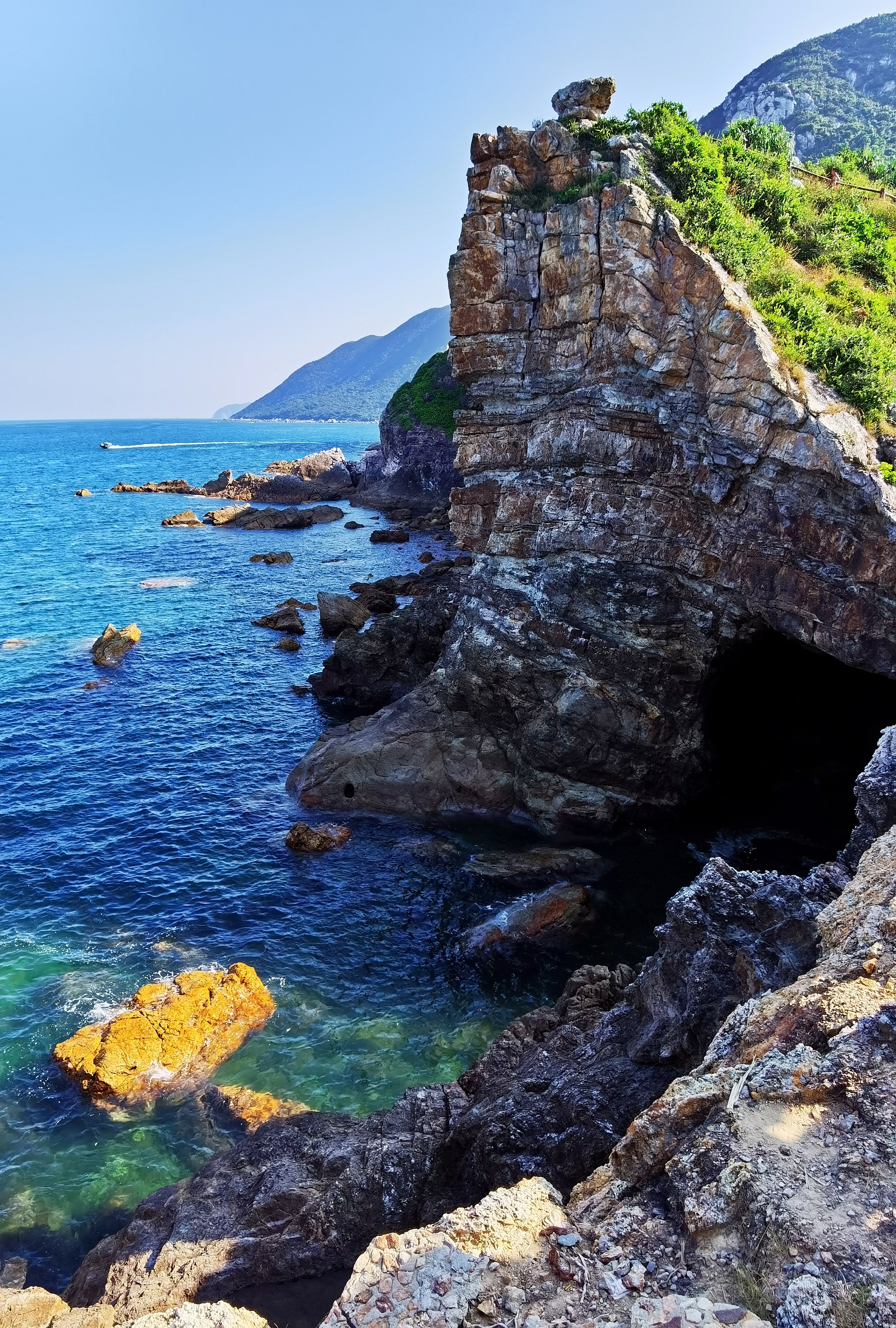 离开了大鹏所城,很快就来到了杨梅坑,路边的车实在太多,提前下了就开始往前走,一路上看见有警察贴罚单,独自开车来的要注意,路边都不允许停车,幸好是和游侠客一起来,幸好车在老家,开不过来。为了这次旅行,一横准备好了充分的防晒装备,头巾、防晒袖、墨镜、帽子、登山鞋全部重新置换了家当,不过的确还挺有用的。杨梅坑的海岸线很美,有下水的地方,也有坐电瓶车的地方。当然,这么美的景色,最好的方式还是徒步,因为这样,不会错过沿途的每一个风景。沿着步道往前走,看得最多的就是来回快速穿梭的快艇和电动车,当然还有一路上形形色色的人们。一横看着这个风景还是心动的,要不是没有准备下海这个事,按理说应该下去浪击长空一番。之前在北海的时候很享受下海搏击,这和在游泳池不一样,和在长江边不一样。游泳池游自己只需要记录着趟数,往前游自然就会有结果,不用太多顾虑。长江的话风险增高了,但是水依然平静,不往江中心去的话一样可以游上几小时。但是下海就不一样了,因为有无时无刻的浪,对于之前保守的一横来讲就是个挑战,人的天性是趋近于平稳、稳定的,而大海是给不了你这种感觉,你越是想要固定的稳定,就越会被浪卷走,所以在海上,一横学会放弃固定下来才安全的思维,而要和海浪一起高低起伏同步,跟上浪的节奏,才能驾驭大海。这相比也就是大家以前所说的,“下海”!