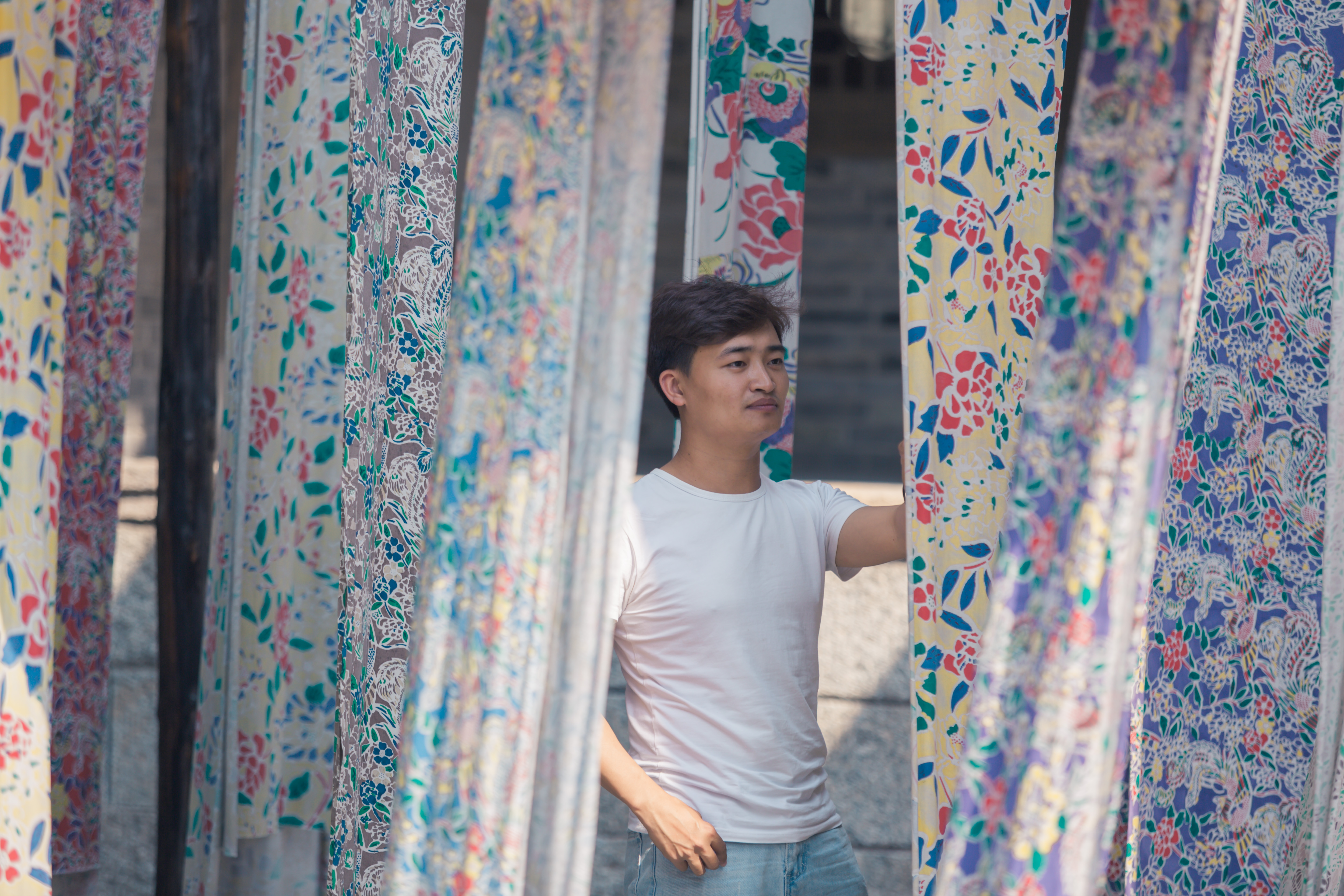 作坊街还有一家染坊可以学染布,这家院子里挂满了各种印花染布,五颜六色的还挺好看的,这些小景都可以见缝插针拍个人像。