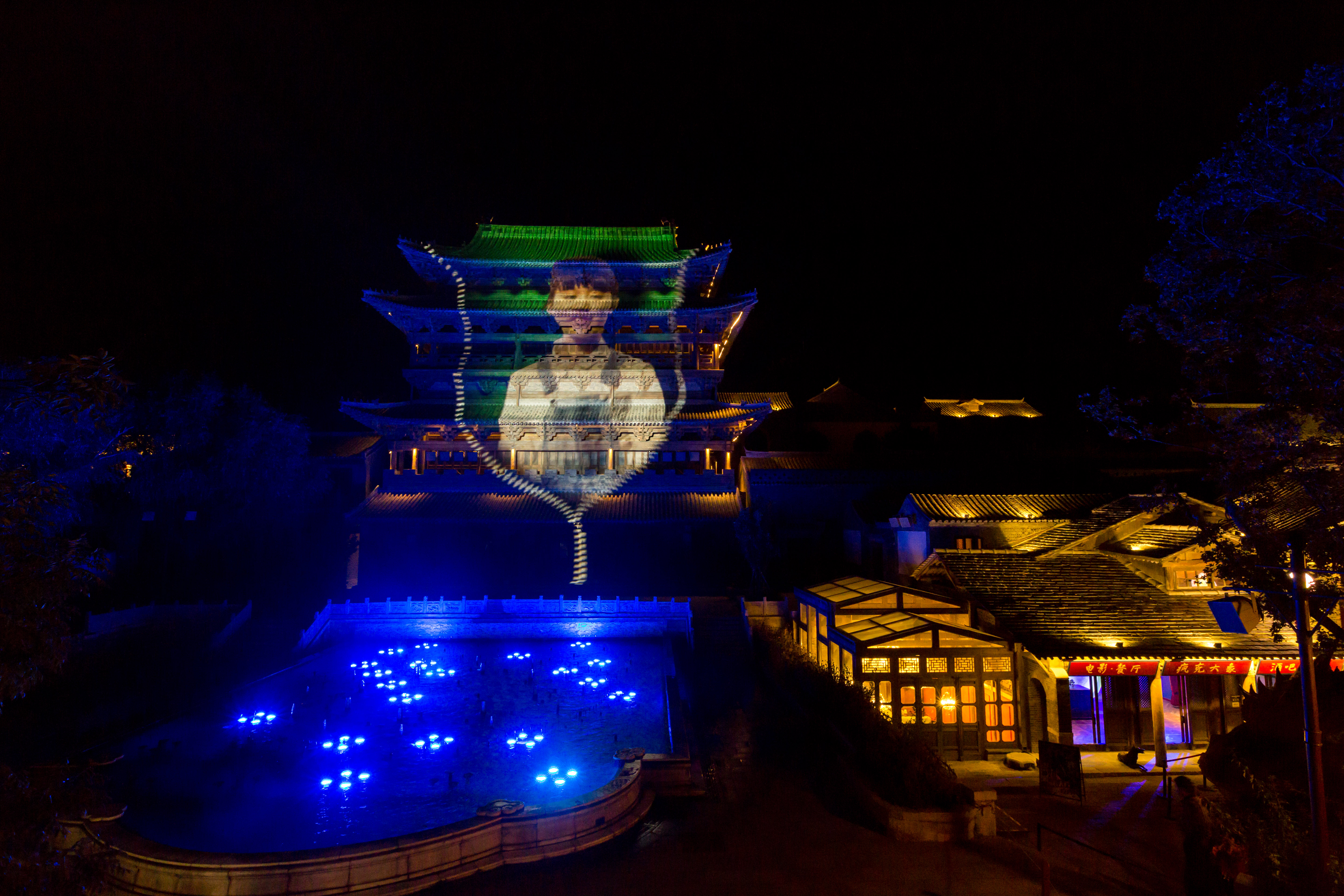 值得一提的是水秀演出,优美欢快的音乐,配合绚丽夺目的灯光,声与光的互动加上先进的投影技术,把望京楼变成了一座“魔楼”,这座魔楼不停的变换着各种美丽颜色,甚至改变形状,似乎望京楼活了一般,魔幻的氛围让所有观者大开眼界。