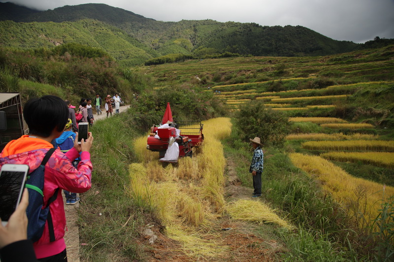 农民伯伯开始收割了,你们还在秀啊秀的。