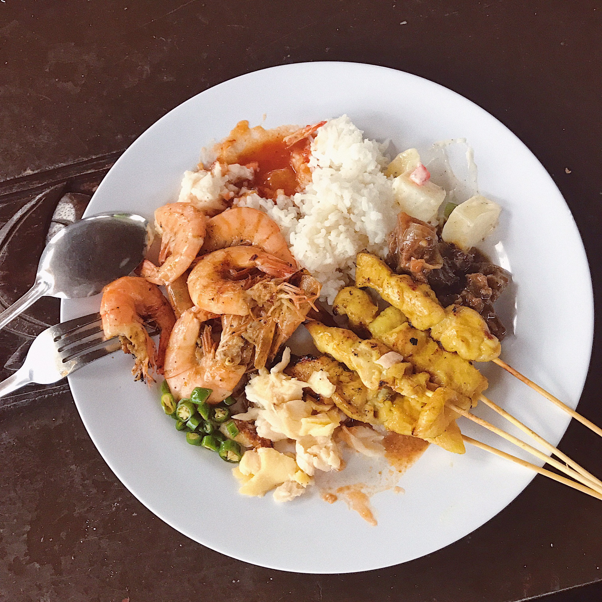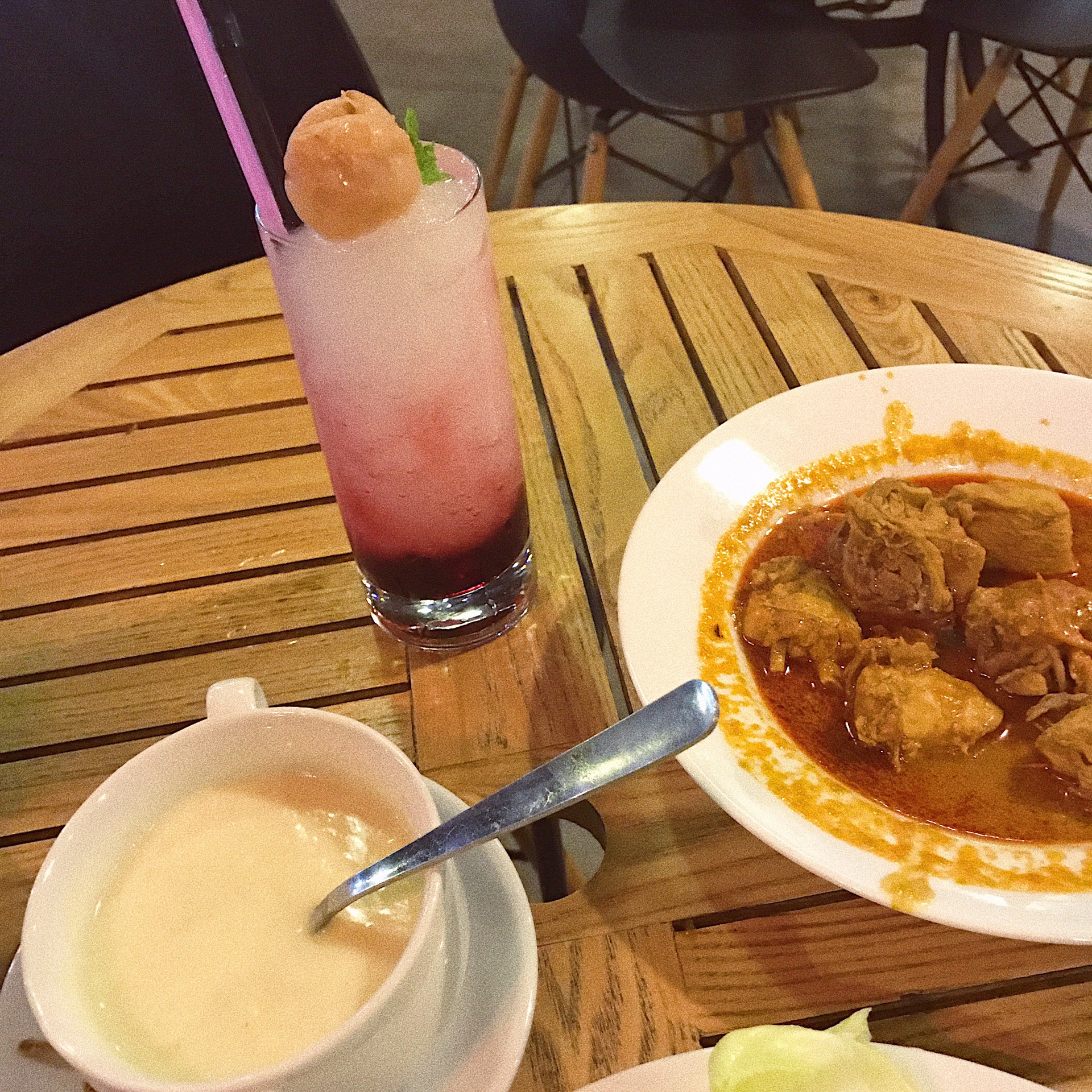 午饭找了一家很出名的娘惹菜,跟着导航走啊走啊,眼瞎走进了娘惹菜旁边那家。起初很惊喜,因为座无虚席,拿到菜单就傻眼了,全是马来文,英文都没有。