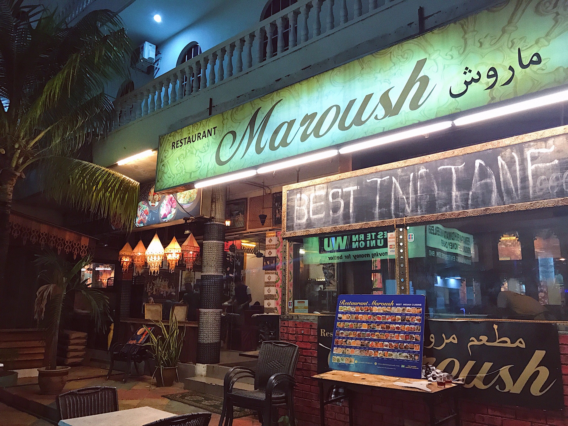 饭店就在珍南海滩附近,从珍南海滩去白色住宿的话,在左手边。餐厅名字:Maroush.餐厅地址:Lot 1, Lanconds Restuarant, Jalan Pantai Chenang, Kampung Lubok Buaya, 07000 Langkawi, Kedah, 马来西亚