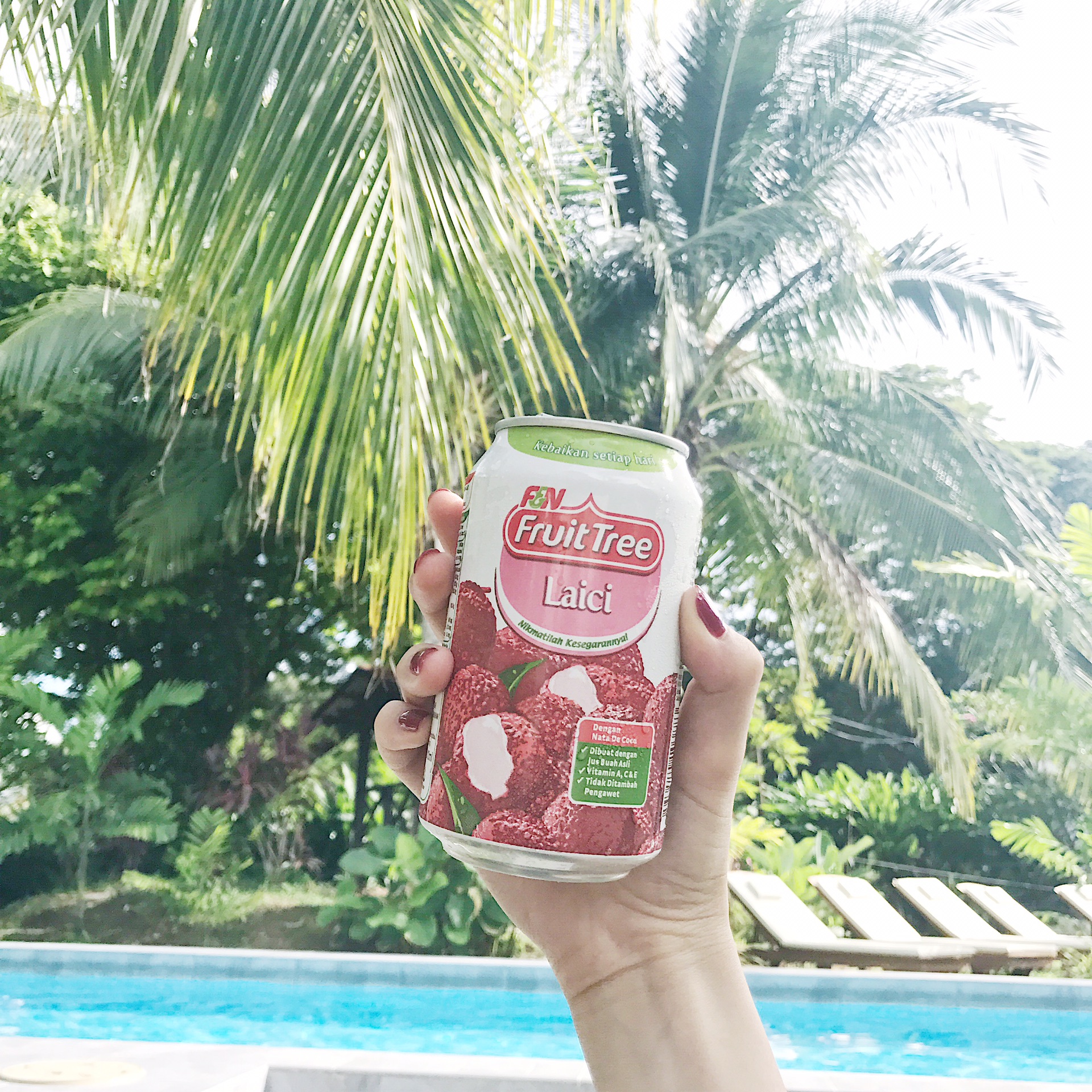 下午买了一堆巧克力泡酒店,躺在泳池前的躺椅上简直不要太舒服。推荐图里的这个饮料,好喝,还有果肉~