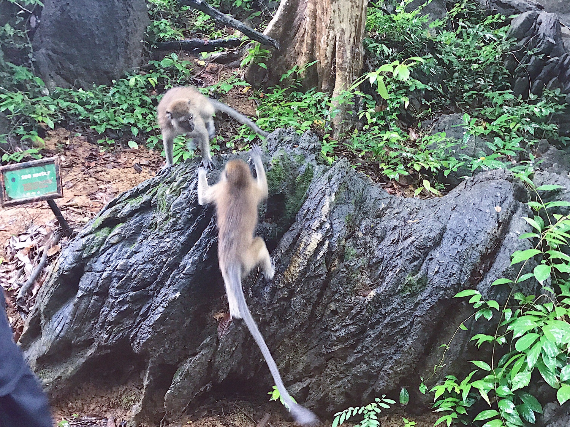 兰卡威:上午:跳岛游(孕妇岛-看老鹰-湿米岛)在华侨大哥的店吃早餐(马来人的店上午不开门),等车接我们去跳岛游。第一站孕妇岛。其实我觉得跟阳朔的睡美人没差haha之后进孕妇湖,门票国外游客6马币,马来人1马币。上去途中有很多猴子,不怕人,图中是🐒刚抢完前面外国小朋友手中的巧克力面包,仓皇而逃~小朋友被吓得嚎啕大哭