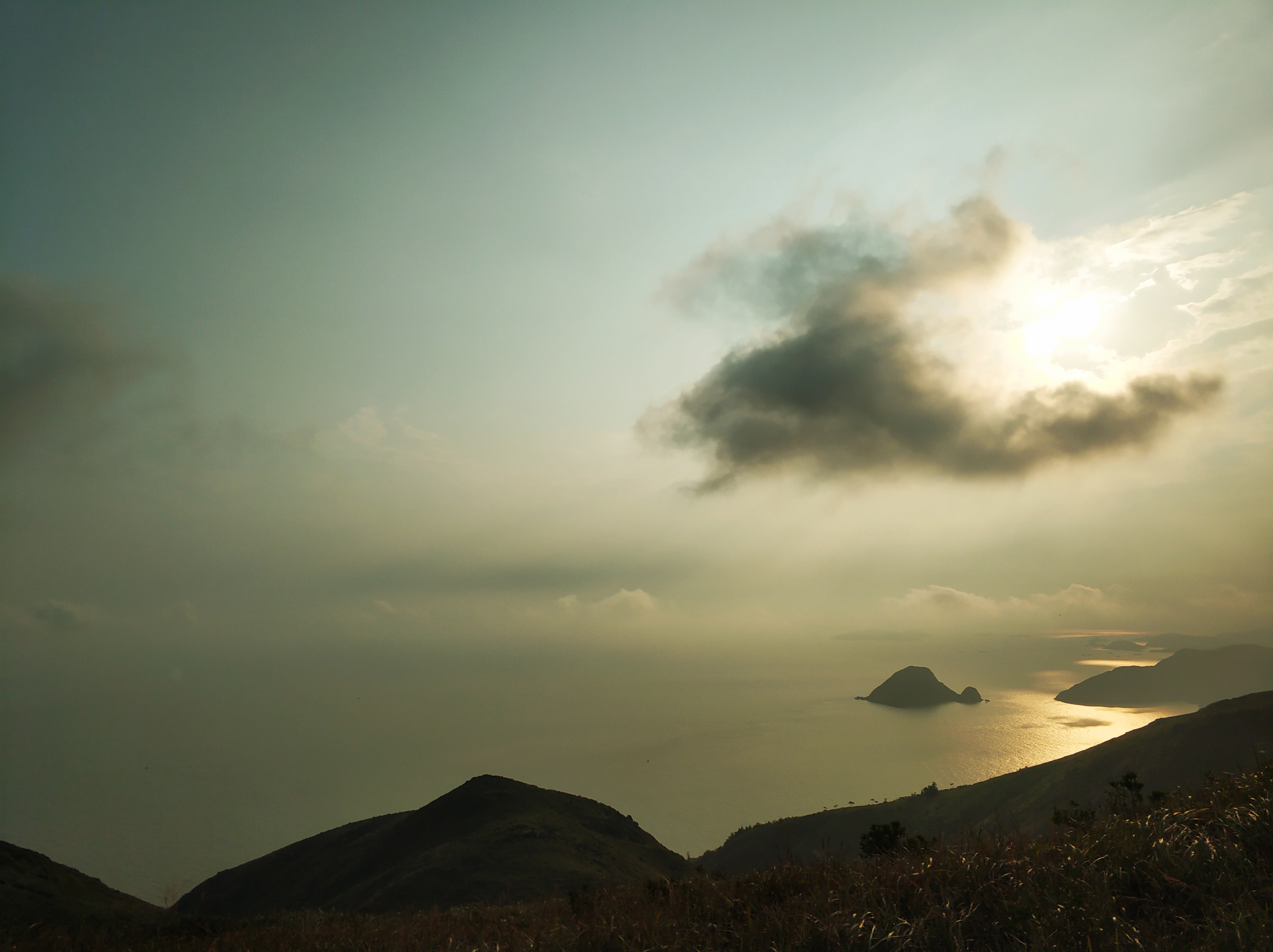 有啦,有啦!风过之后,太阳亦在云层中时不时探出脑袋,以示存在。山的那端,竟有些如梦似幻起来。一座小岛像悬浮于云雾之上,而天上飘来荡去的云雾更有将它裹挟之感,海上生云雾,如似天境。