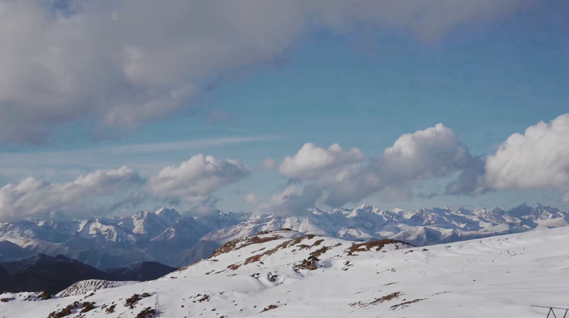 随着海拔的爬升,一路都是雪山,连绵不绝。而且刚刚下过一场雪。