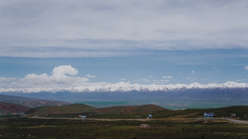 翻越拉脊山之前,这次行程中第一次出现了雪山,同行的人要买披肩,师傅停下来给我们拍照,我和老铁两个人放飞自我,相当开心。而后一路都是壮阔的戈壁滩还有雪山,大朵大朵洁白的云笼罩在上方,置身其中,仿佛触手可得。我后来翻看以前的照片,不论是川西,还是大西北,最美的风景永远在路上。
