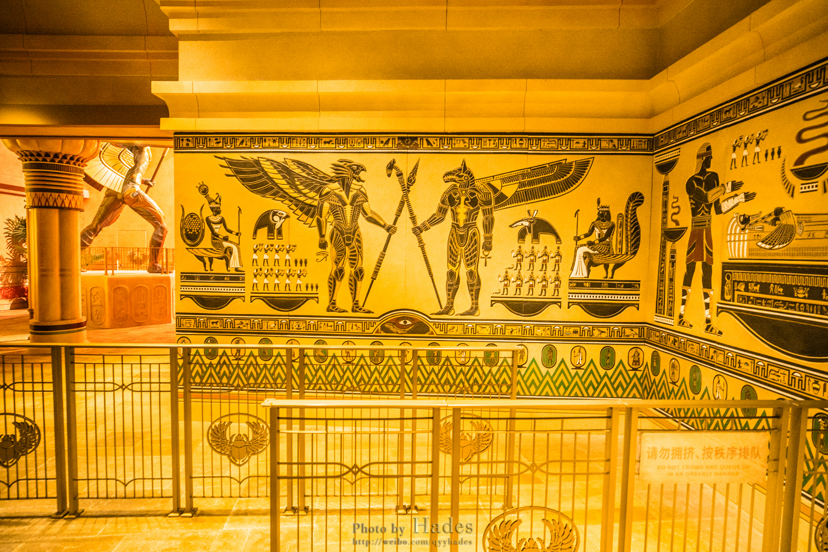 风情浓郁的街道,热情的摊贩,还有一幅幅精美神秘的壁画。到了同在三层,与分歧者无畏训练营一墙之隔的《神战:权力之眼》专区,立刻就有了置身于埃及的感觉。