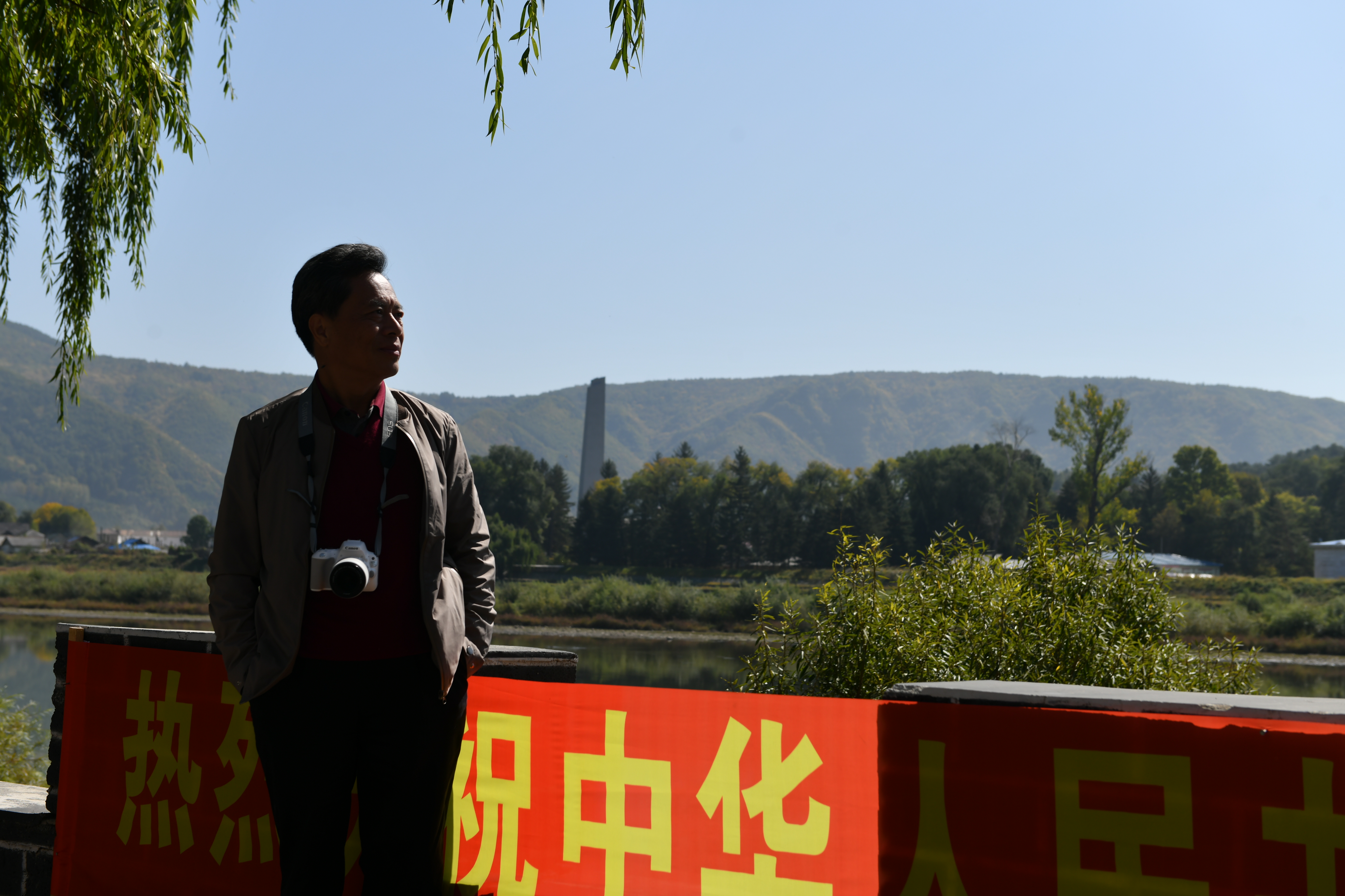 大虾哥站在八道沟鸭绿江江边远眺,江对面就是朝鲜的金正淑郡,是以金日成夫人名字命名的一座城市