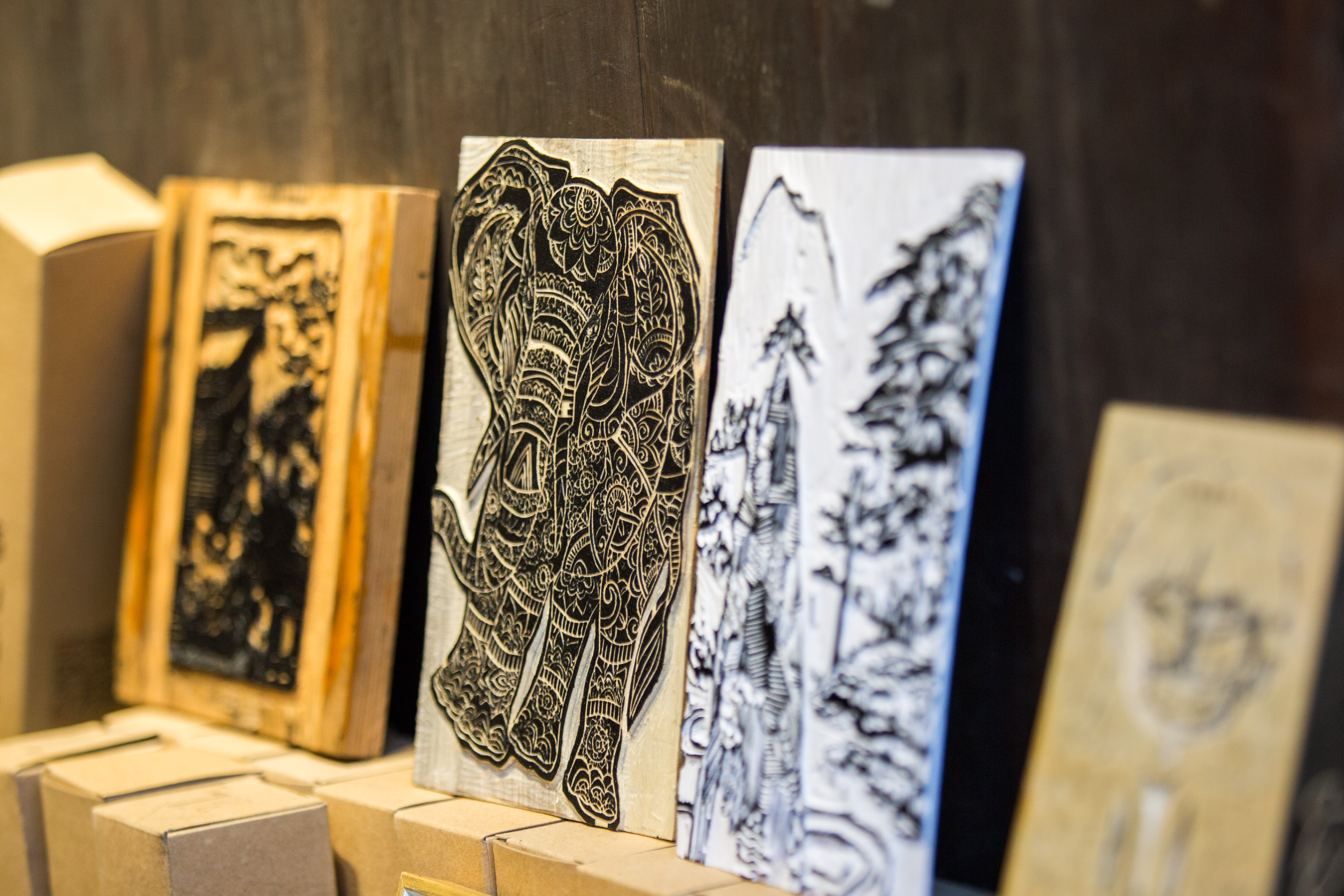 在这些老民居里面,还有一些手工体验,比如版画,我了解到黄山的版画,徽派版画雕刻的明代中叶兴起于徽州的一个版画流派,徽籍画家、刻工通力合作的艺术结晶。在这里,我现场观看了一位女艺人在版画刻制工作。