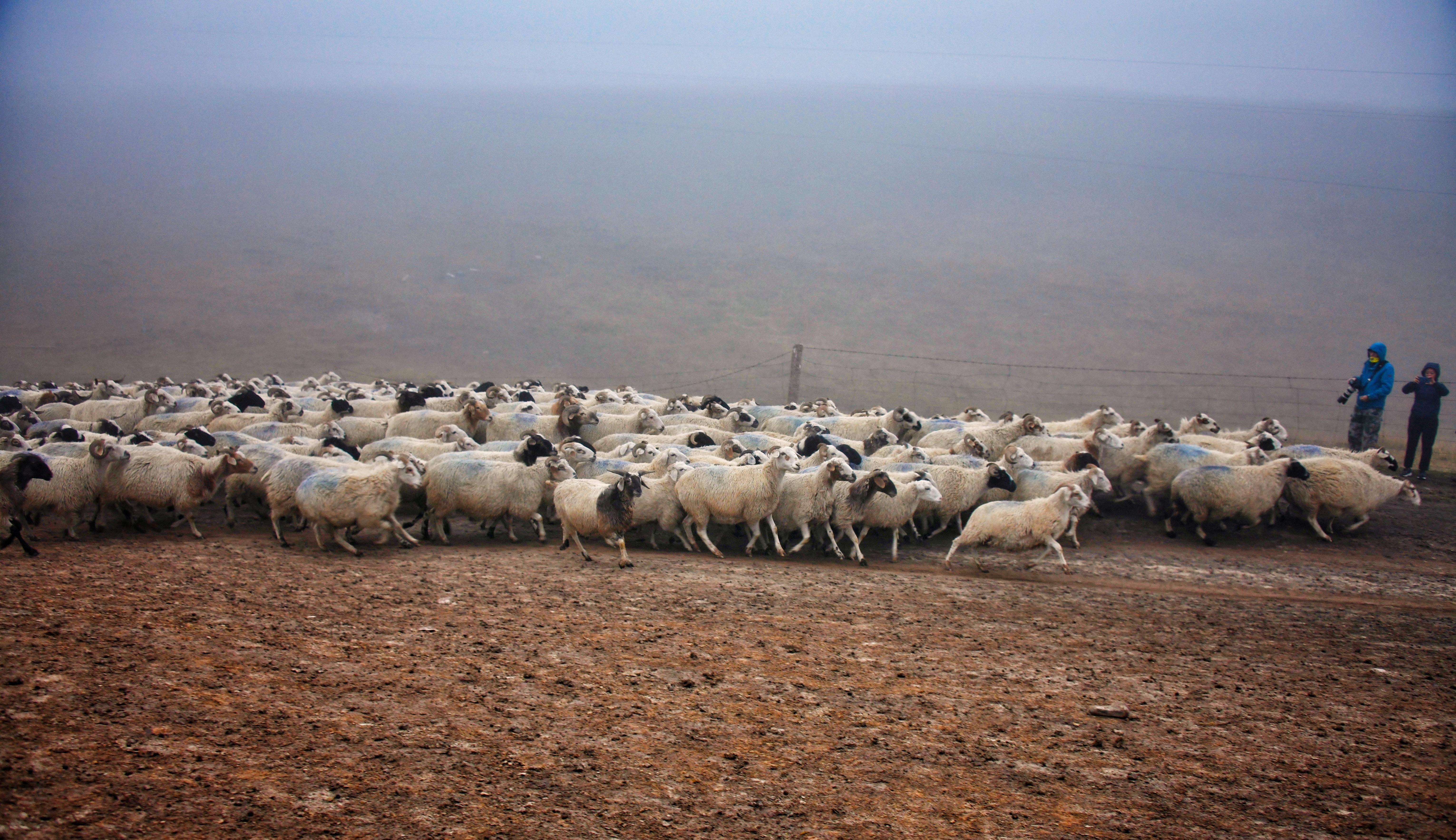 傍晚左右,到达山丹军马场,本事安排牧归羊群的,但偶遇全国冷空气,突然大雾弥漫整个马场,能见度不到20米。茫茫一片。