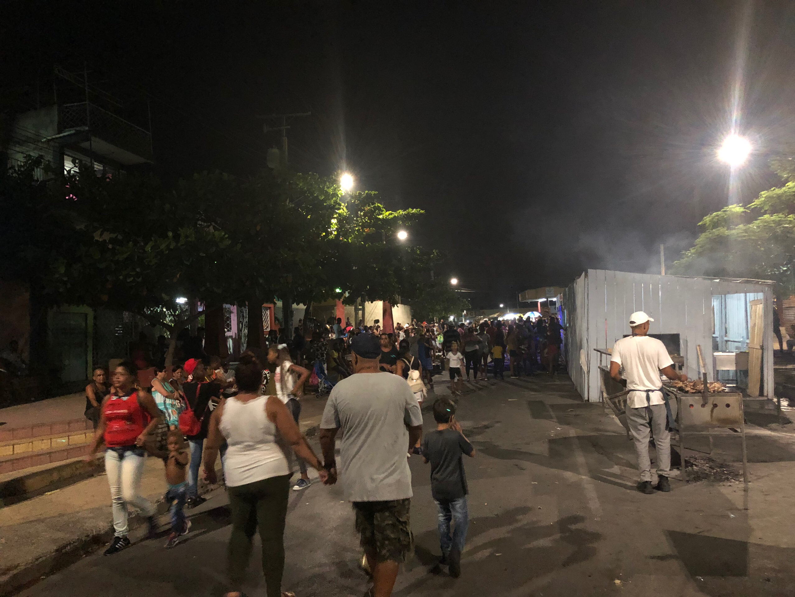 从哈瓦那到圣地亚哥可以选择坐火车和大巴。路程稍远大概12个小时左右。狂欢节一般是在每年的7 8月举行。全城的人都会过来喝啤酒吃大餐跳舞。其实古巴人是蛮穷的,为了狂欢节能好好玩一次,一般会提前1 2个月就开始攒钱。7 8月白天还是蛮热的,大多数人都是晚上过来,到晚上3点多人还是很多。一连持续7到15天。就这一条街上全是这样的木棚。各种好吃的和喝不完的啤酒。在物资匮乏的古巴,这几天能吃到这么多好吃的真的太难得了。