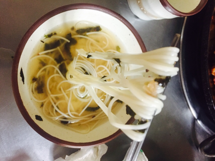 烤大肠吃完以后可以点拌饭,大叔会直接放进去拌好。吃结束以后大叔还会赠送一小锅面,这个面真的好吃到我们想再买一