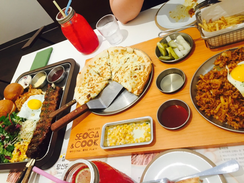 这家是我们到首尔后的第一餐饭,就在地铁首尔站二楼。店名给忘了,装修的很好看,但东西并不是特别对胃口。韩国人大概很爱吃甜的,出了蜂蜜黄油薯片大热后,薯条上也放了蜂蜜,很迷。但不得不说,这个薄底的芝士pizza深得我心,不仅这一家,其他家的这个pizza也超级好吃!大家有机会可以尝试一下。