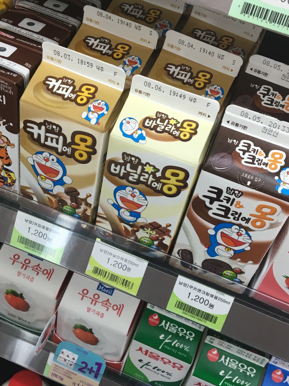 韩国便利店里真的有好多好吃的!喝的更是对我口味!!除了大家都很喜欢的香蕉牛奶,巧克力牛奶更是我的爱❤