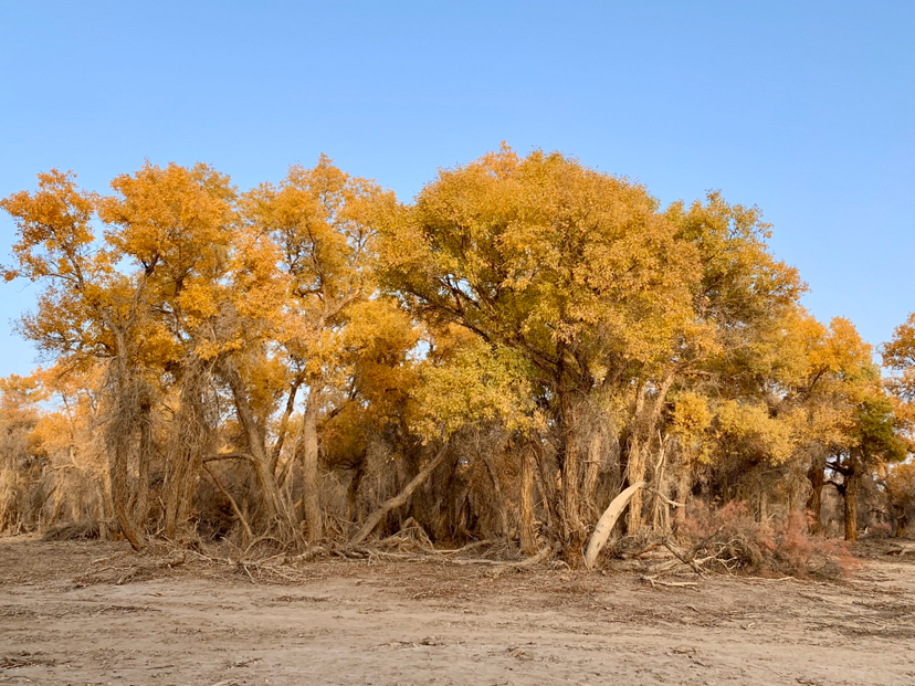 据说全世界90%的胡杨都在新疆,可新疆这般天辽地阔的,就像是一小撮胡椒粉撒在一张大馕上,还真不够看的。