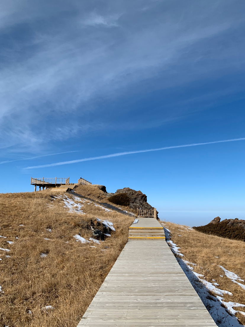 今天再次来到天山,坐山牙山缆车,登栈道直上海拔3056的山顶,峰回路转,一路美景。天池风光尽收眼底,博格达峰和雪山云雾近在咫尺。山临绝顶,白云在侧群峰俯卧,心旷神怡!祖国河山大好!