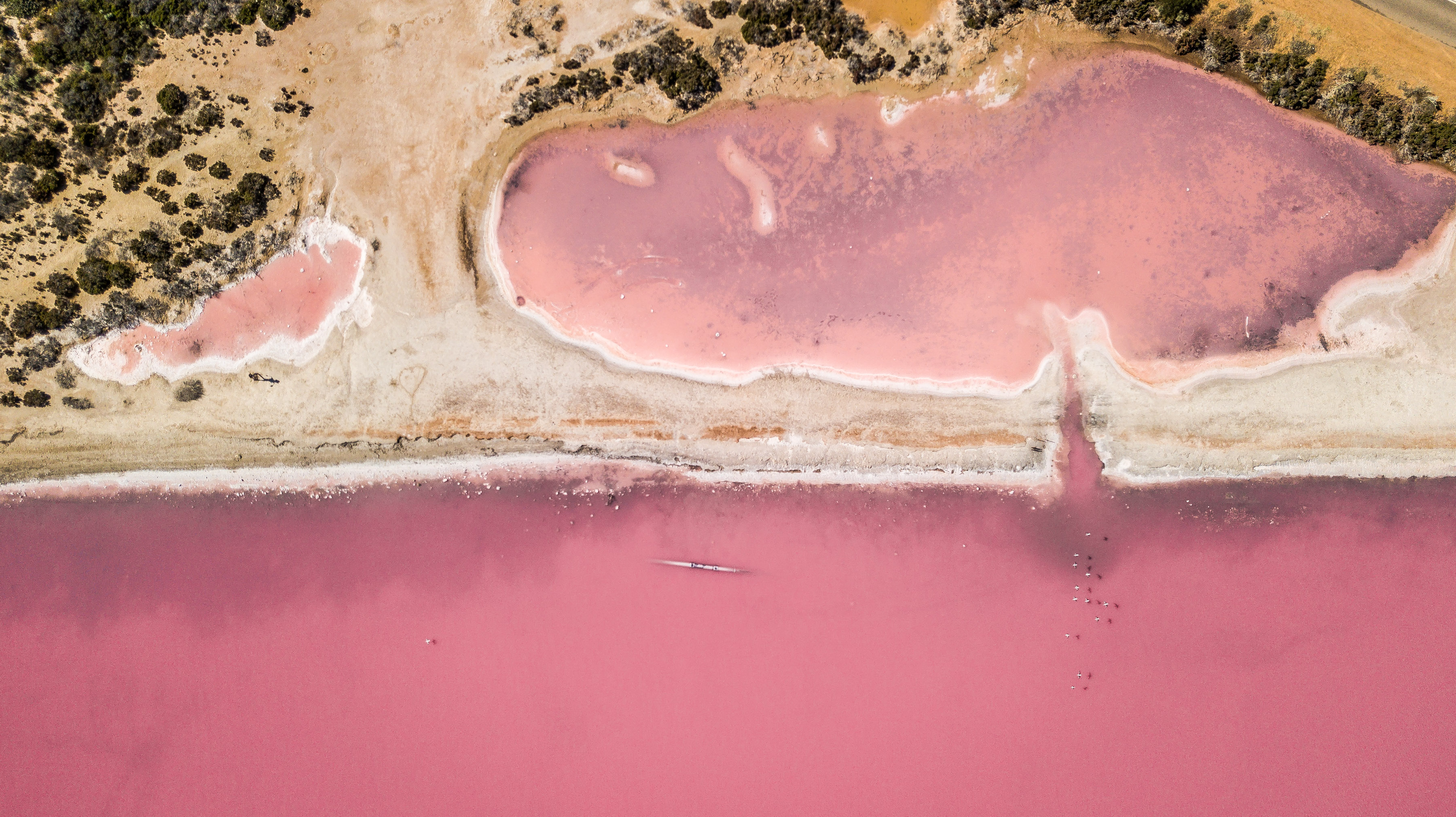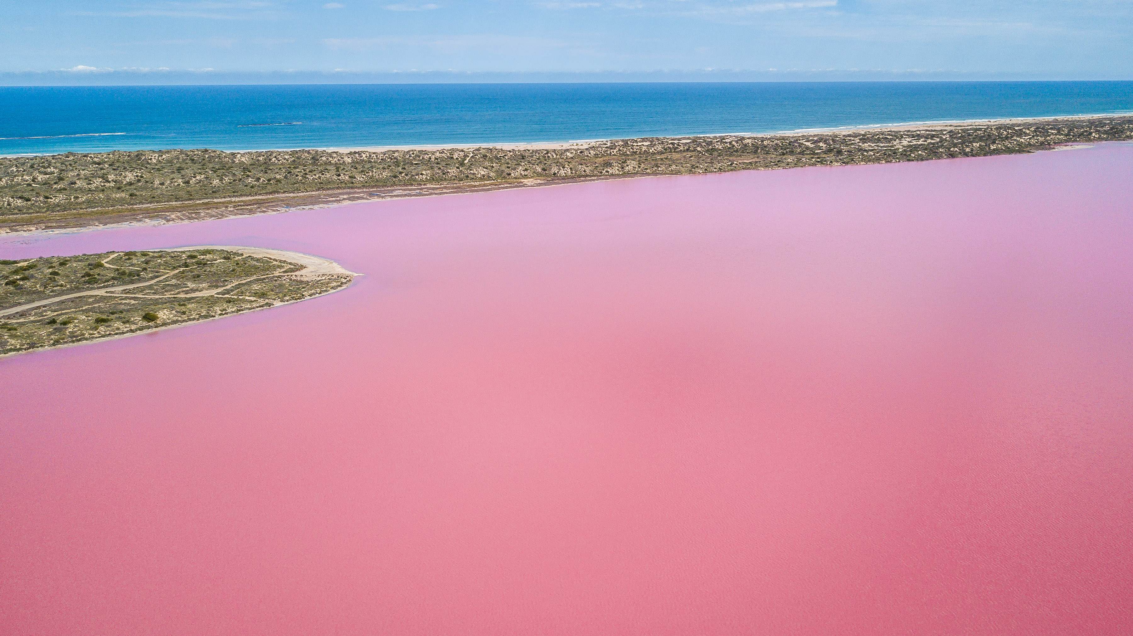 赫特泻湖(Hutt Lagoon),又被大家称为赫特湖,粉红湖,因湖面呈现美丽的粉红色而走红网络。粉色主要是因为湖中藻类产生了丰富的β-胡萝卜素,在阳光的照射下,显得粉红。不过湖水的颜色也并非一直都是粉红色,而会随着盐度的变化,光线的强弱而改变,呈现出从淡绿到深红等不同的色调。