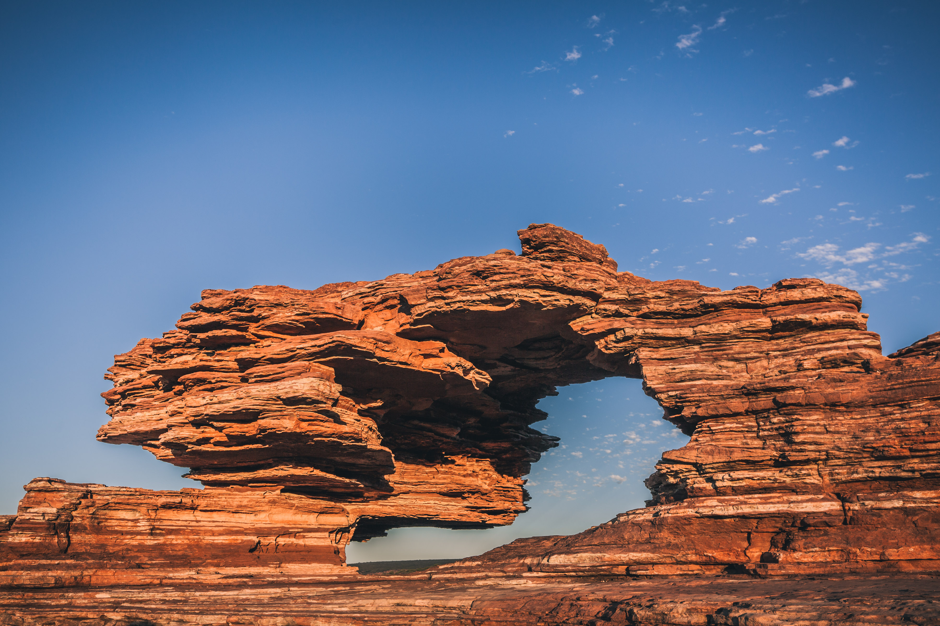 卡尔巴里公园内,还有著名的【自然之窗】,它也是通体红褐色,在傍晚光线下变得更深红一些,不过它不在海岸边,需要开车40分钟左右到达内陆。说实话对这里还是比较失望的,只能简单的拍个打卡照,想拍日落也不适合,可怕的苍蝇会让人怀疑人生