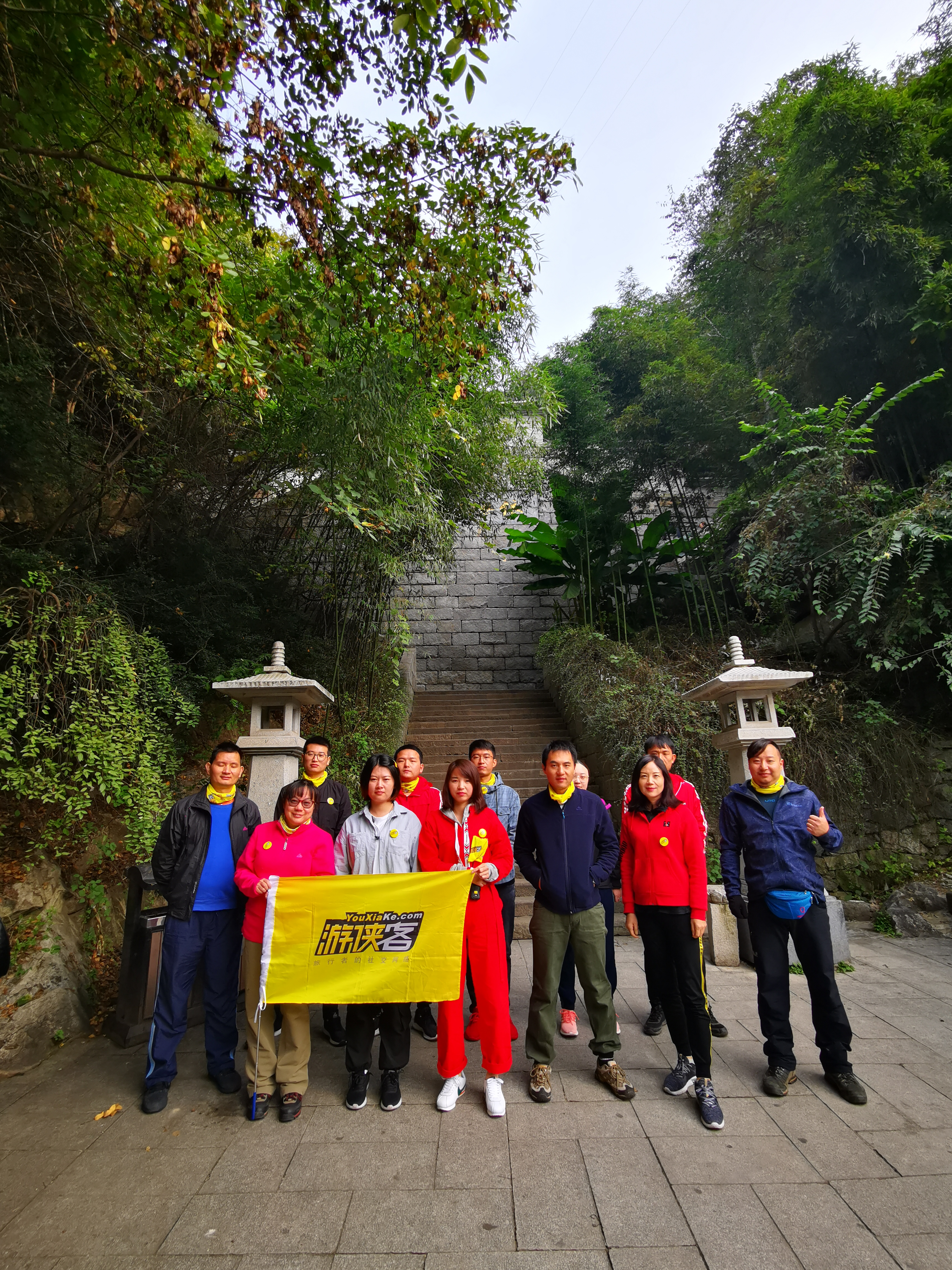 预计9点到达净业寺山脚,结果8点35分就到了,这也是个好的预示哦。照例先带大家做个拉伸,今天活动人数不多,属于精品小团队了。