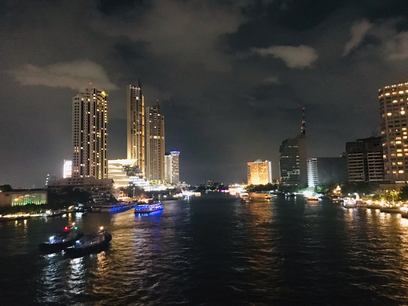 湄南河畔的夜景🌃最适合游船不过了,这里的水运十分发达,水量大,水质清澈。
