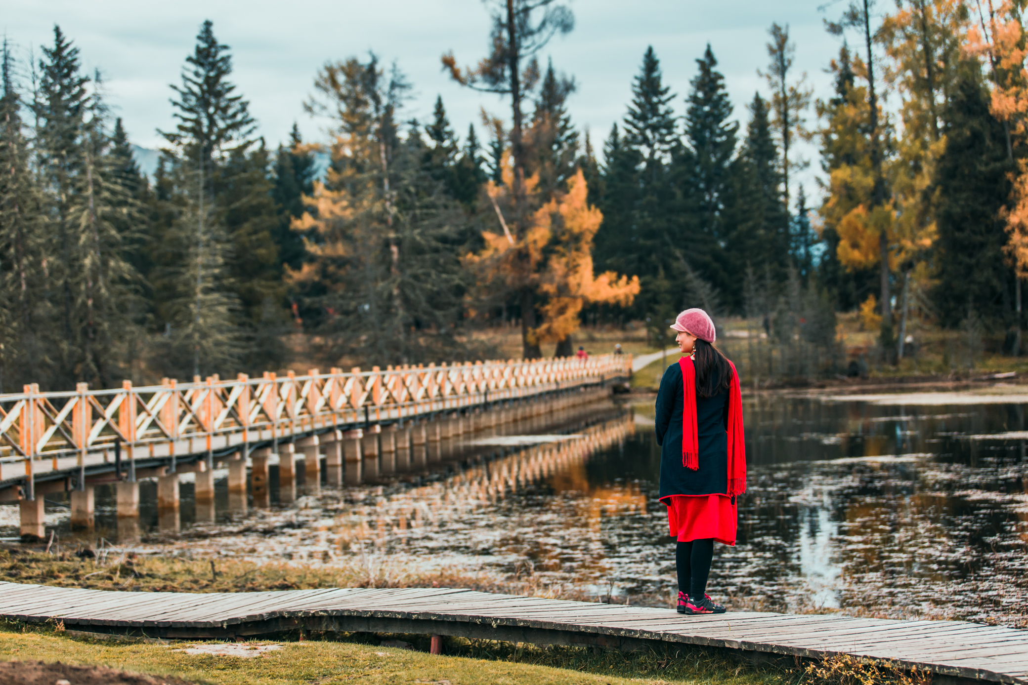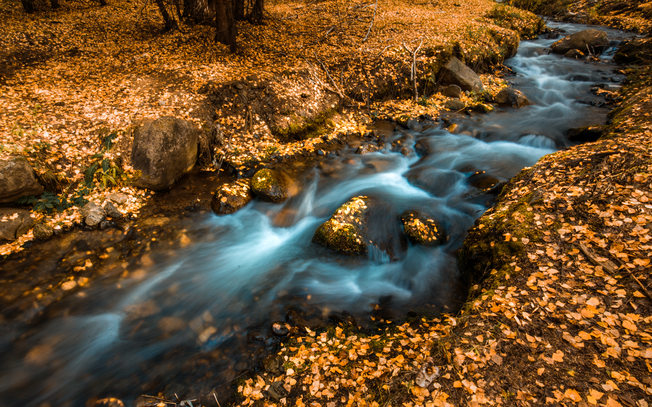 白哈巴村子比较小,秋季游客有很多,所以住房异常紧张,还好我们运气好,住在主街边上的小木屋,木屋后面就有一条小溪,这成了大家拍摄慢门的好地方。