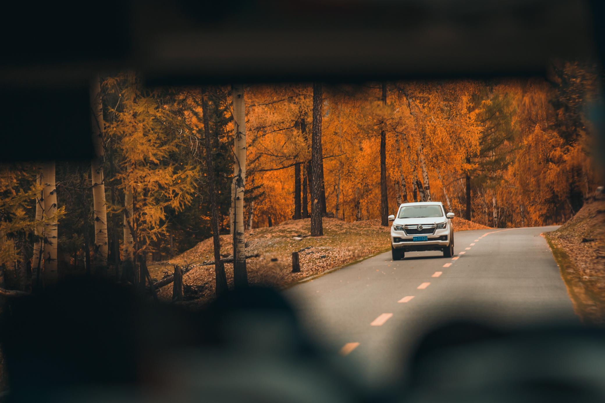 离喀纳斯村越近秋意越浓,忍不住就算坐在车最后排也要抓一张这浓郁的秋色。