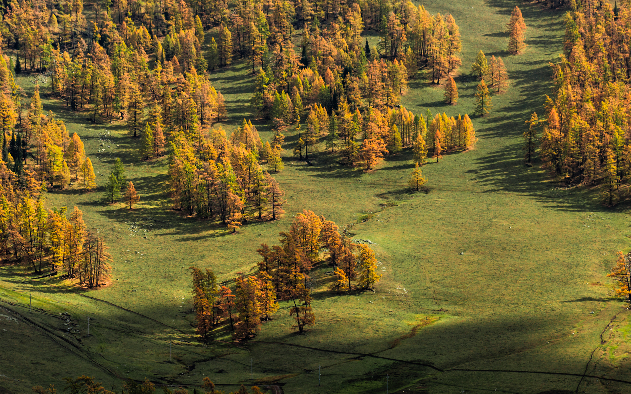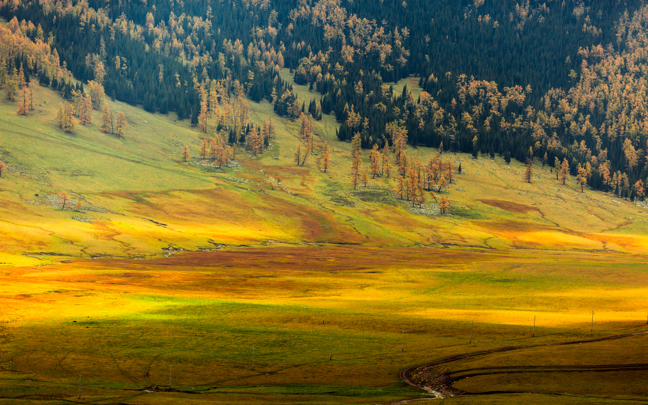 往喀纳斯走的路上,竟然有一大片绿色好似春天,在这个时节,能看到如此动人的绿色也是惊艳。
