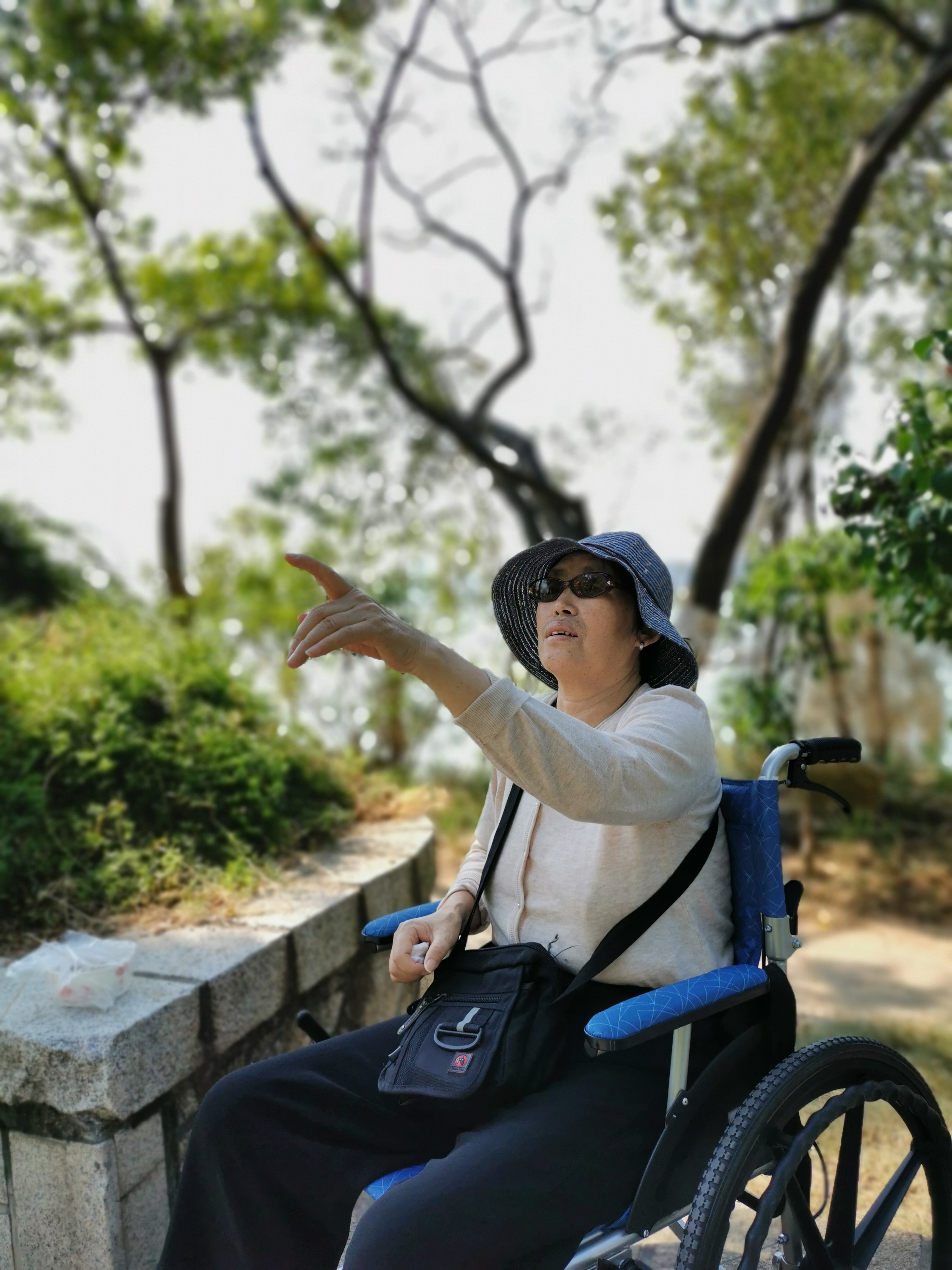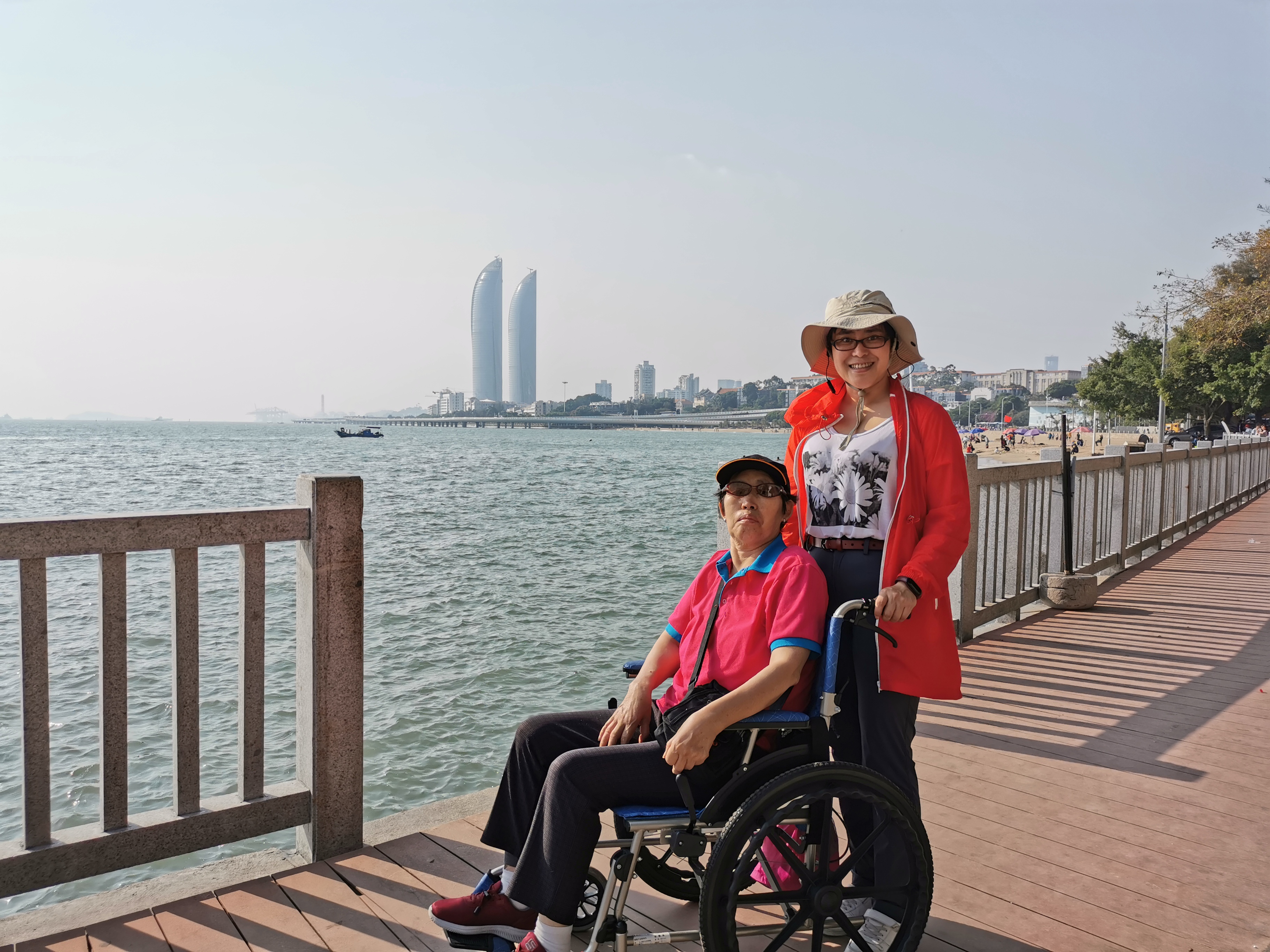 接下来就是徒步环岛路,一路上遇到不少台阶,总有好心的小朋友(大学生的样子)帮忙一起抬轮椅。期间还有一个幼儿园的小朋友,看着老妈愉快地打招呼,甜甜地叫了声“奶奶”。