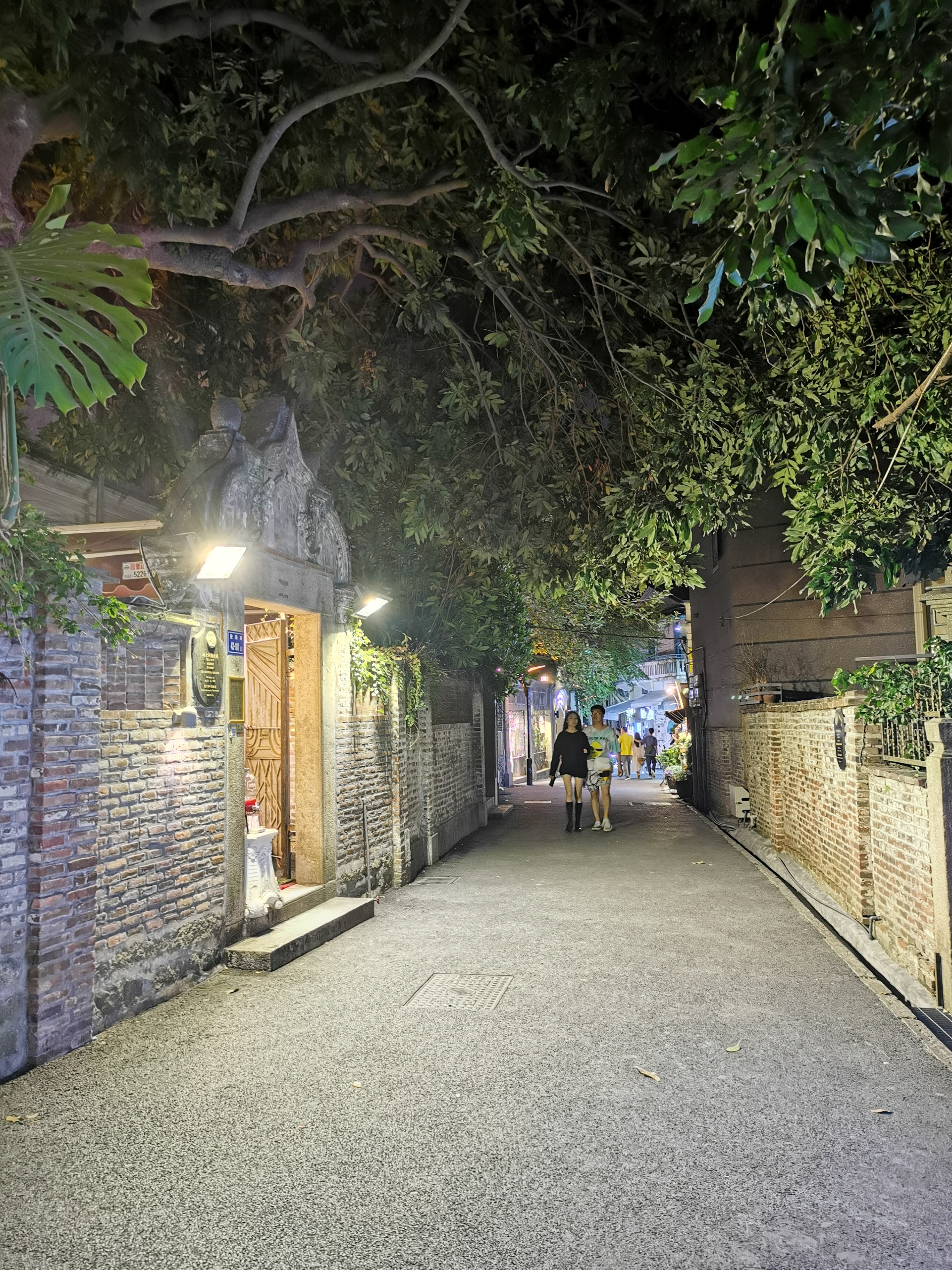 不过走着走着,发现导航似乎出了一点儿问题。刚巧弄堂里出来一位拄着拐杖的阿姨,她看起来非常的精神,没有觉得有需要拄拐杖的必要,不过拐杖每敲击一次地面,都感觉有种佘太君的威仪。向她问询应该怎样回内厝澳码头,她说你走错了,你信我不,信我就跟我走。我相信自己直觉的判断,就跟着她一路走过去。她带着我进了鼓浪屿美院的后门,然后指点我如何七拐八拐地走去前门,美院里面路灯稀疏,不得不打开手机的手电筒功能,但果然很快就走到了鼓浪屿美院的前门,出了门就是我们投宿的酒店。