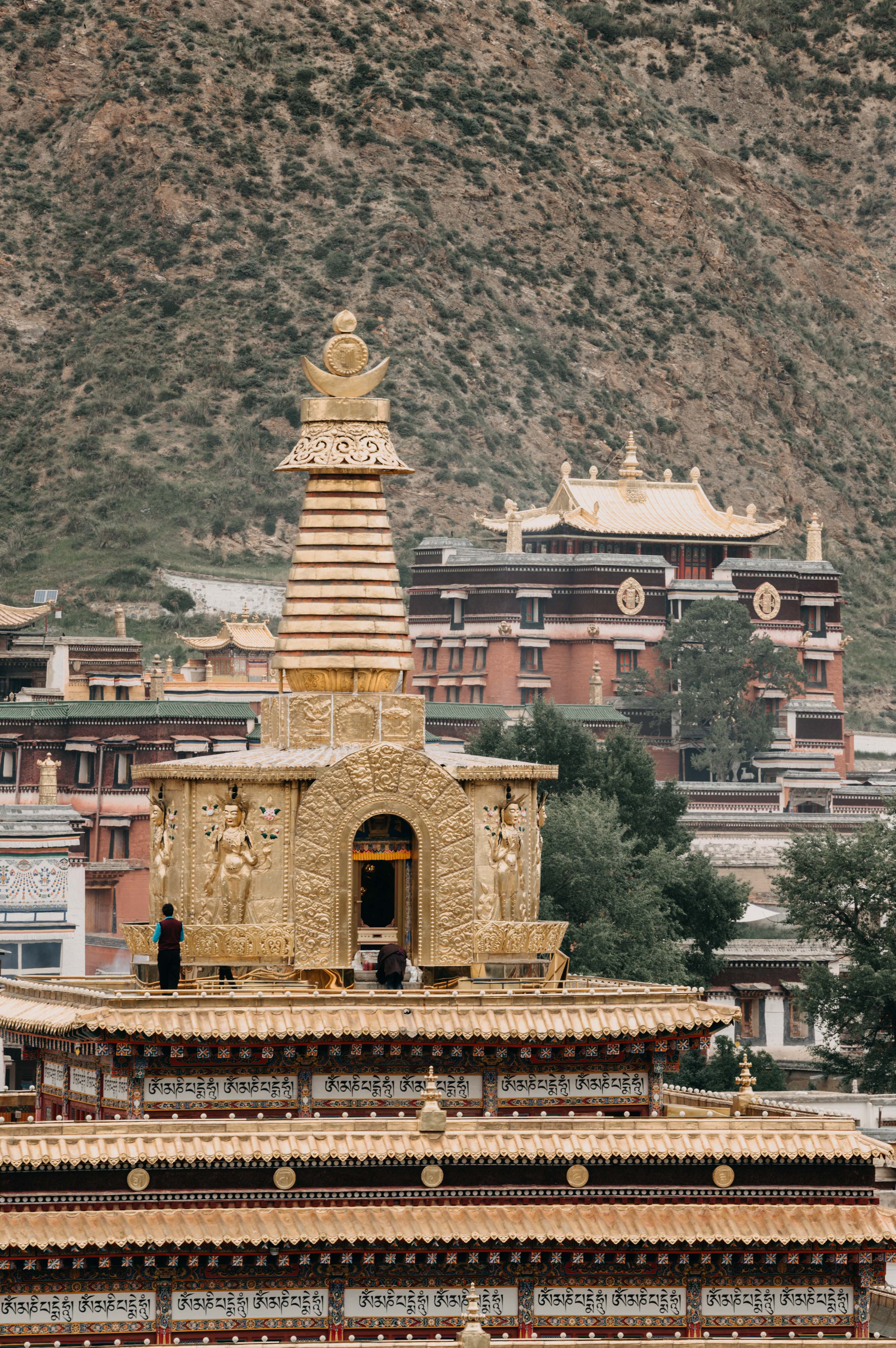 从观音寺往下看,可以看到一个金色的寺庙~