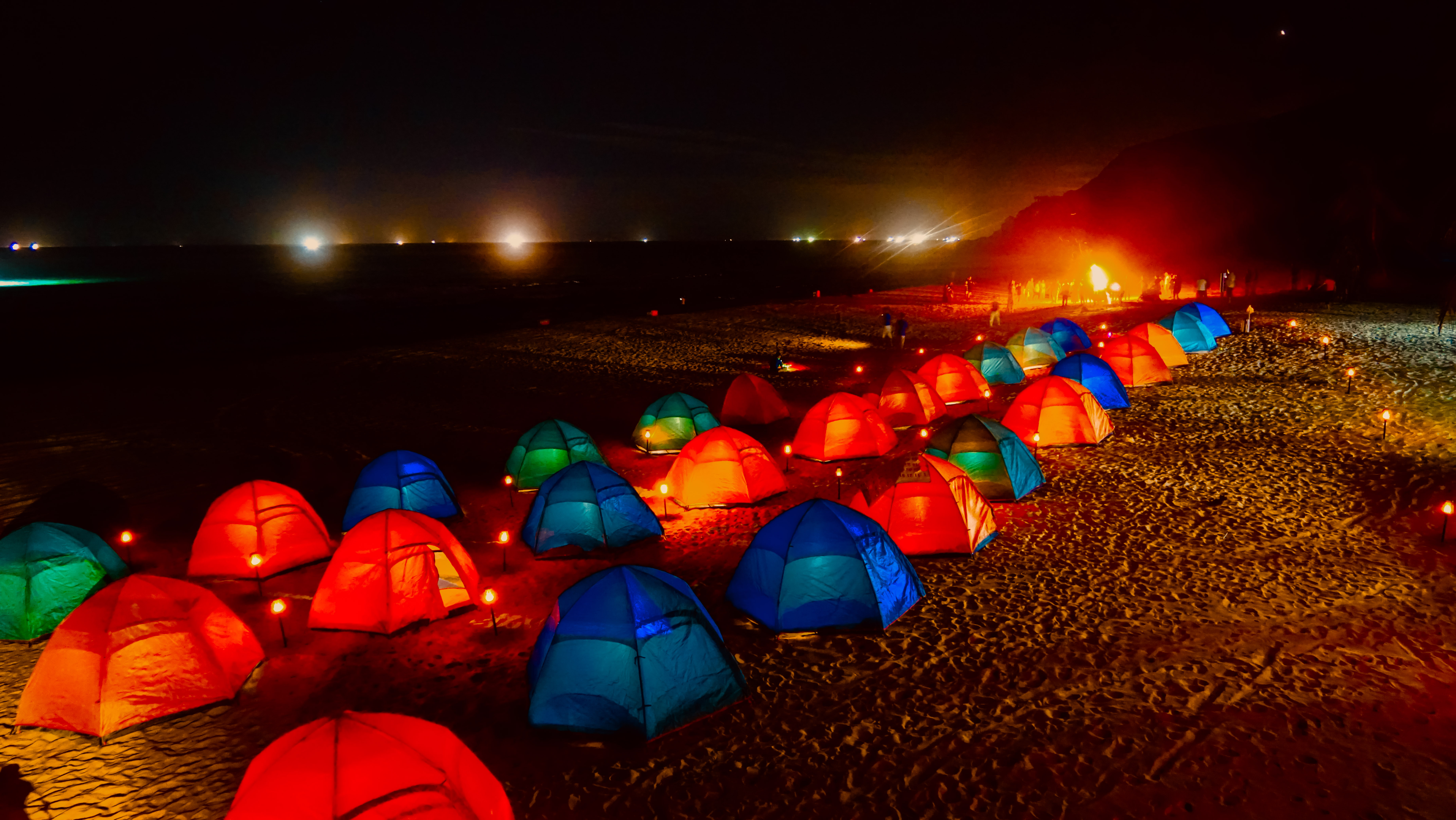 晚上会有值班的景区交通车接送回游客中心,或者直接住在沙滩的帐篷里,看海上渔火通明,一顶顶五颜六色的帐篷,像一只只可爱的水母游荡在沙滩上。