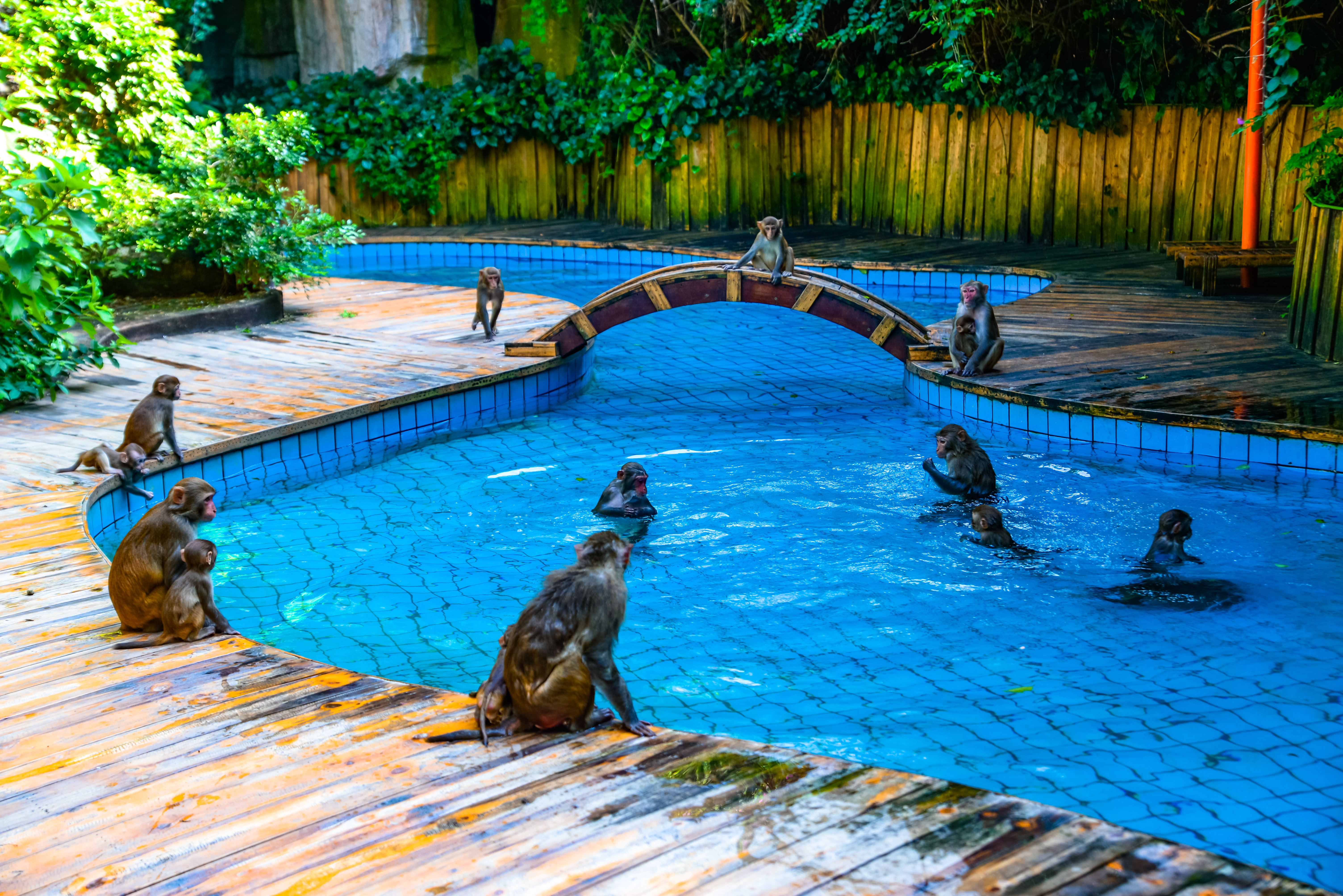 浴圣池是猕猴们的水上乐园,在驯化师的指挥下,猕猴们或潜水、或游泳、或 高台 跳水,向游客展示它们天性善水的特点和能耐。令人捧腹的猴艺小品和充满乐趣的猴杂技表演,热情好客的猕猴仪仗队列队迎宾,惹得人们捧腹大笑流连忘返。