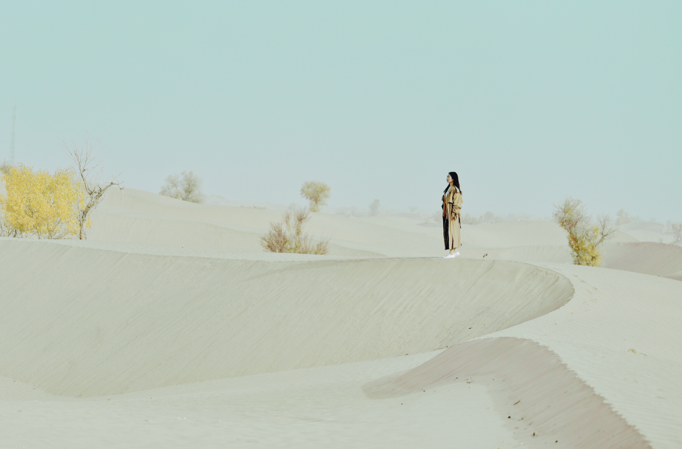 夕阳西下,塔克拉玛干又呈现出了绚烂的一面,阳光洒在沙漠之上,镀上了一层金光,金黄的胡杨点缀其间,犹如置身幻境
