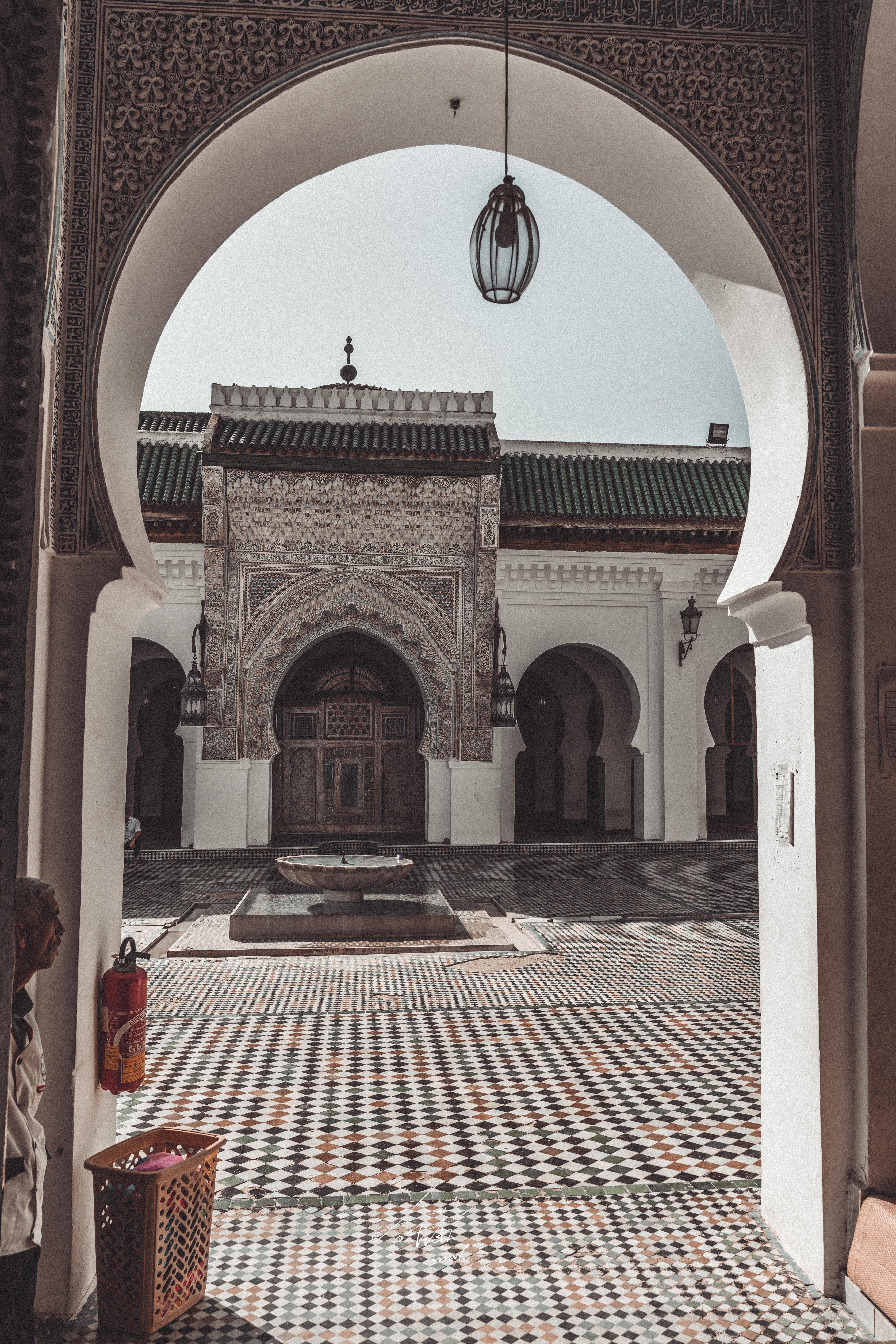神奇的是,原来大学也在这些小巷中藏着。 卡拉 维因大学的门紧闭着,这是一所不对非穆斯林开放的古兰经学院,没想到默罕默德挺有办法,让人开了一道门缝,我们只能在门口窥探一下里面的景象,进去拍照肯定是不可能了。据说这里面能容纳20000人同时祷告,真有些不敢相信。或许,这里头真的别有洞天吧。