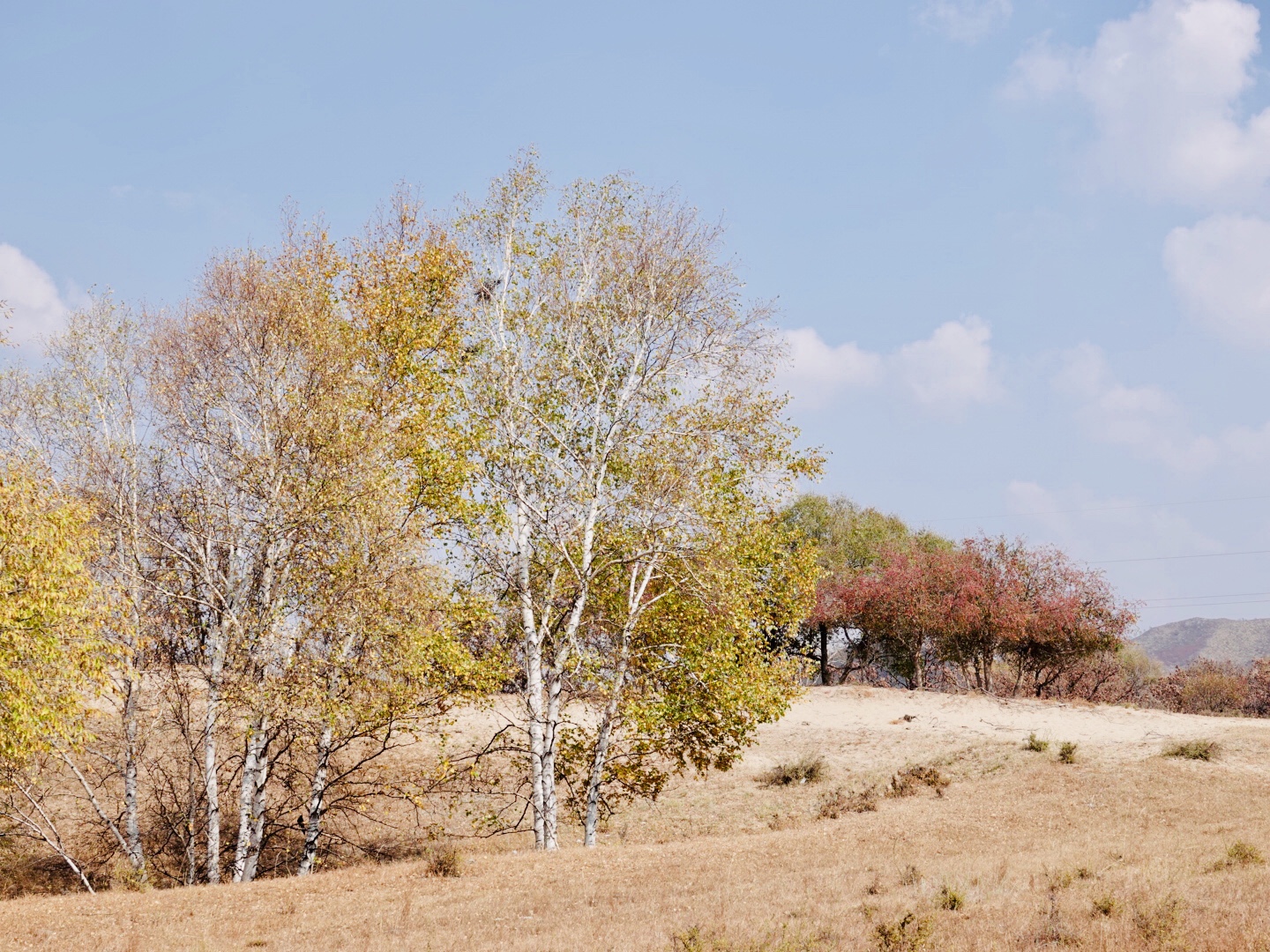 又回到乌兰布通草原,蛤蟆坝让众人大失所望,虽然漫山遍野依然流淌着秋的色调,但白桦树的叶子差不多都掉光了,可见已经过了最佳观赏季节,欣赏春花秋叶是讲缘分的,而每年的季节变更都不尽相同,就像阴差阳错的人生,所以能在最佳的时间看到最美的风景,恰如在正确的时间遇见对的人,可遇而不可求。