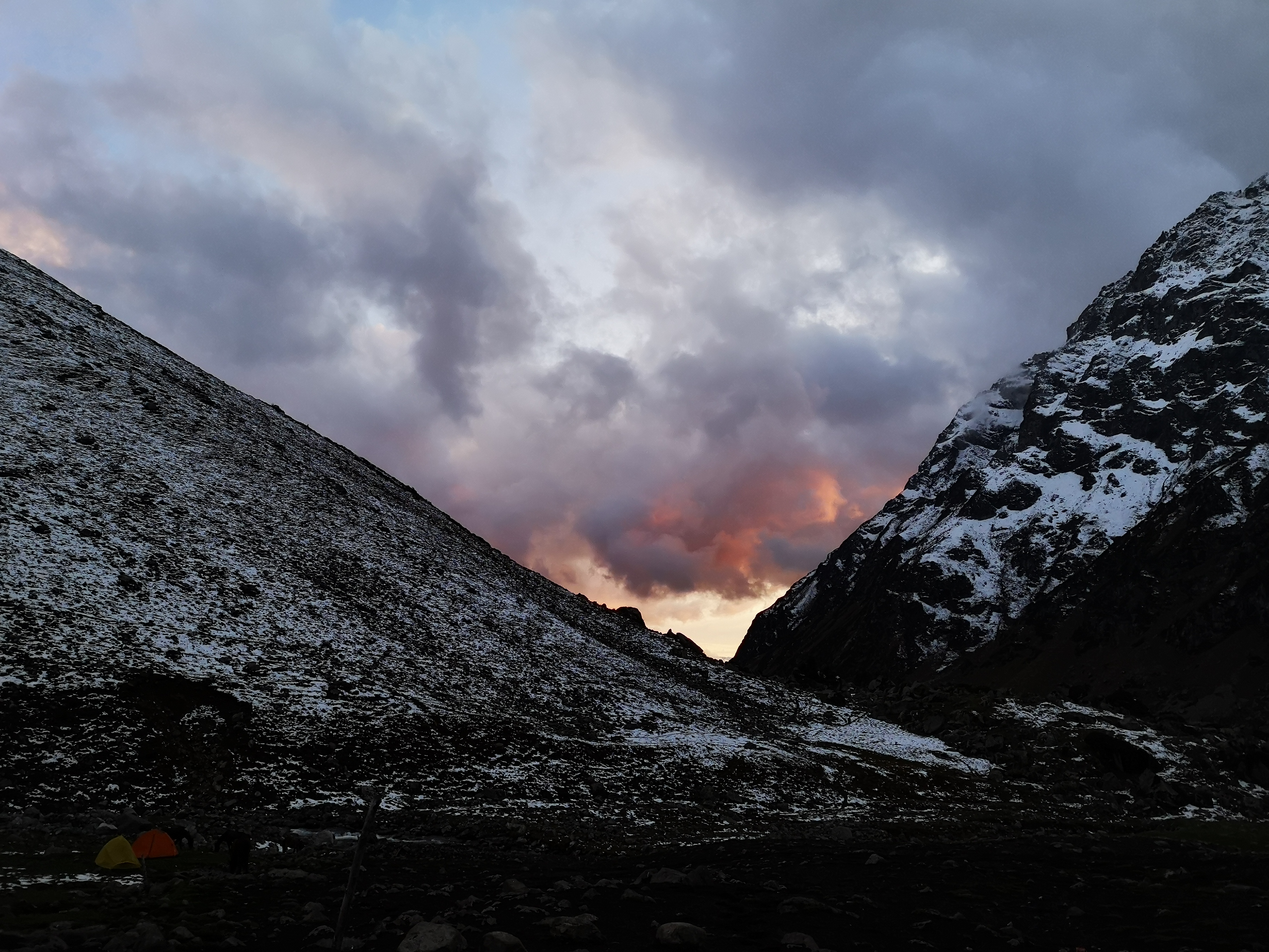 马上看到营地了,天气貌似还不错,然而遇到一队反穿的驴友,说他们前一天翻达坂遭遇暴风雪,无法下撤,只能达坂扎营,半米深的雪,开始焦虑.........