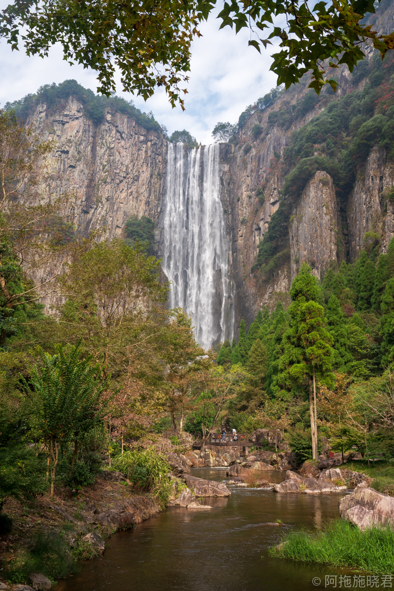 整个瀑布共有287米的落差,这个阶梯形的瀑布群一直到了开幕式现场那才是最佳角度。如若过段时间来,想来应该更美,枫叶红透了,文成出名的红枫古道也该上线了。