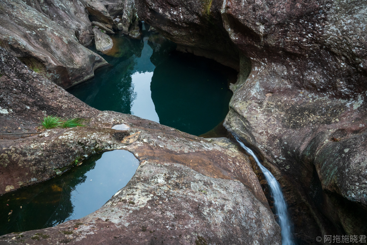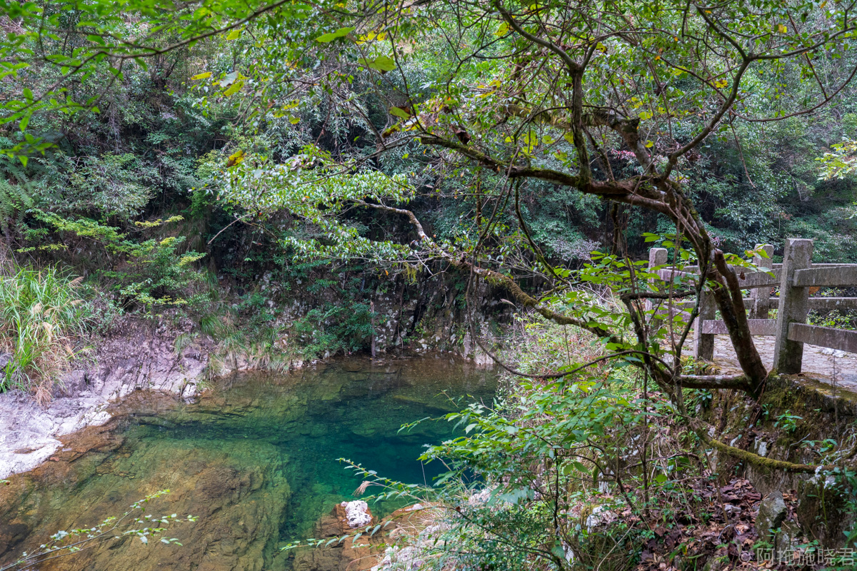 没一会儿功夫,我们置身于峡谷底。这里是万年古河床,哦,对,铜铃山的壶穴瀑布可是全国绝无仅有的。这个由高而低的峡谷,一个个水潭摆放在那,超特别的瀑布。
