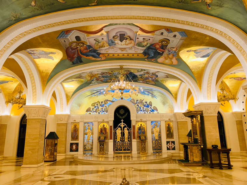 我们只能参观教堂的地下室,目前被用作临时的祷告场所,也是金碧辉煌!