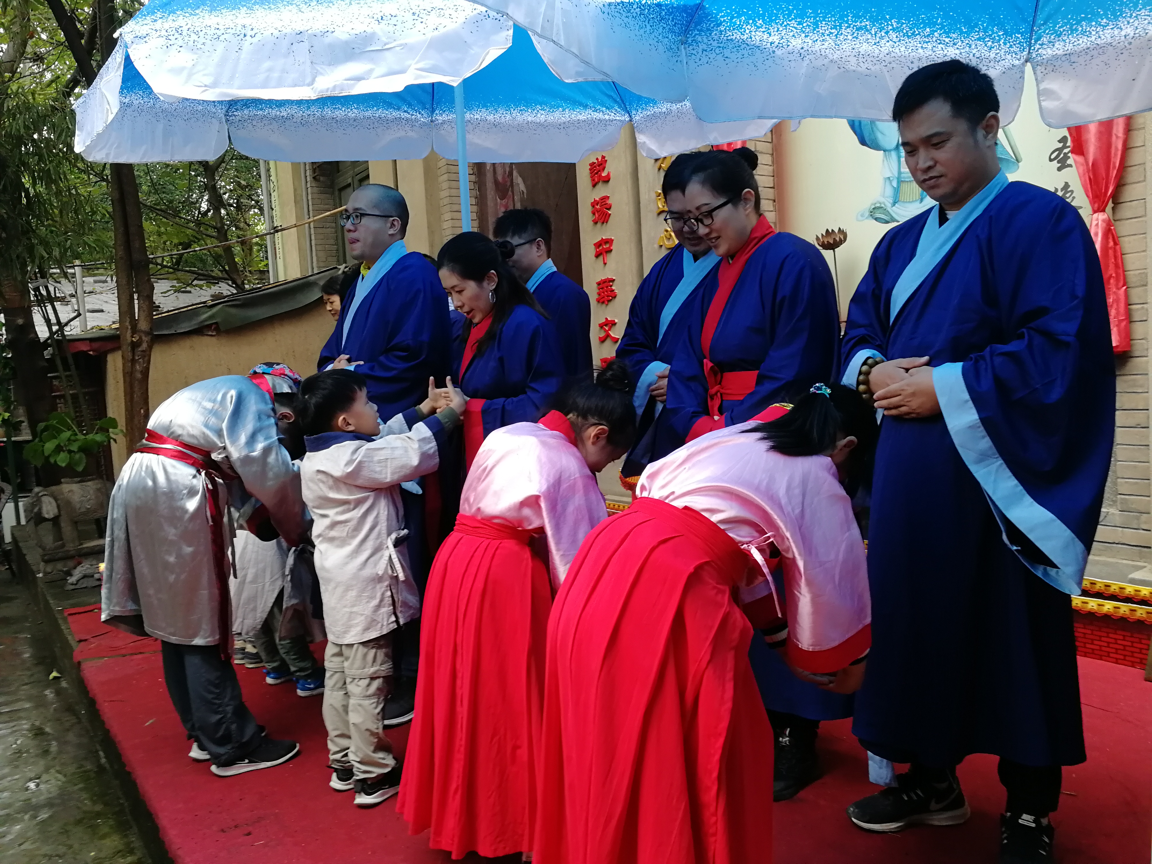 今天我们最后一站是小雁塔。小雁塔与大雁塔东西相向,是唐代京师长安保留至今的两处重要地标。小雁塔在唐、宋朝时期一直叫“荐福寺塔”,后来为了对应大雁塔才得名。今天最重要的一课就是学汉礼,中华民族是礼仪之邦,千年中华文明始于汉礼,宝贝们跟着老师认真学习,并且和父母互相作揖礼,这一刻是多么温馨。