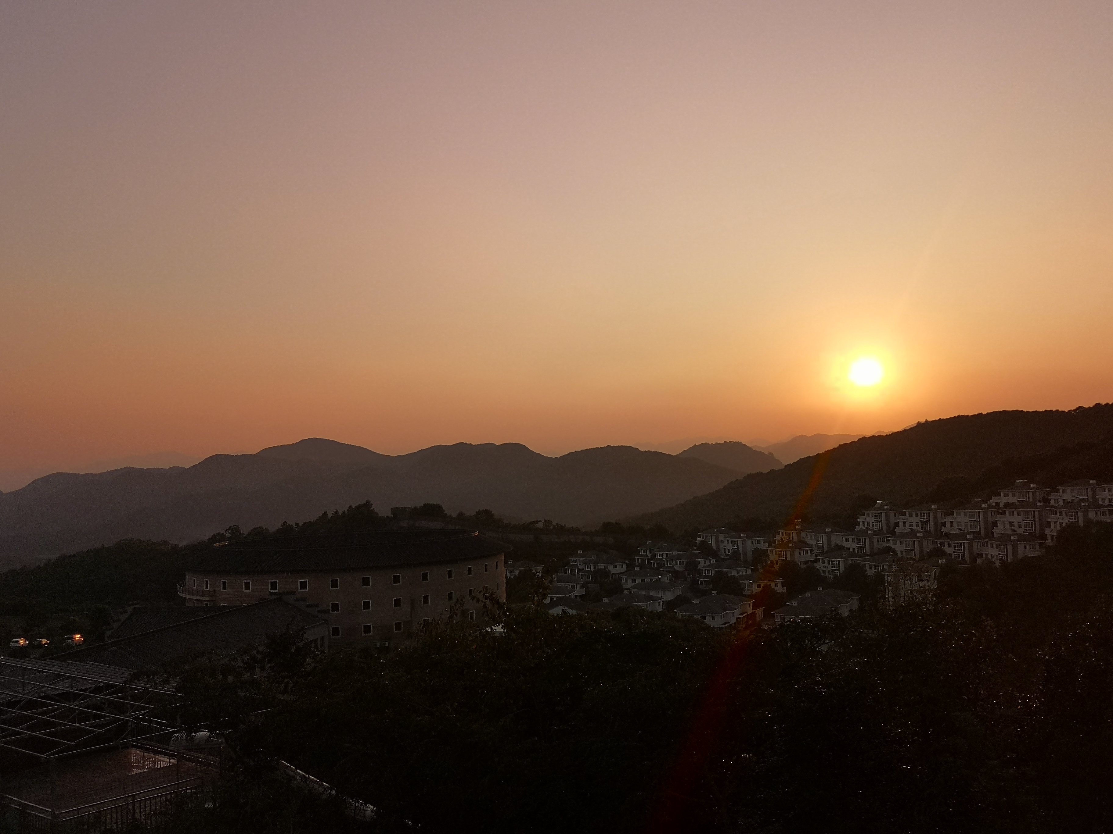 终于见着了拭目以待的土楼了,可惜设备不足,无法拍下它的美感。领队把我们安顿好今晚的住宿。大伙趁着饭前去海上长城赏一回日落。