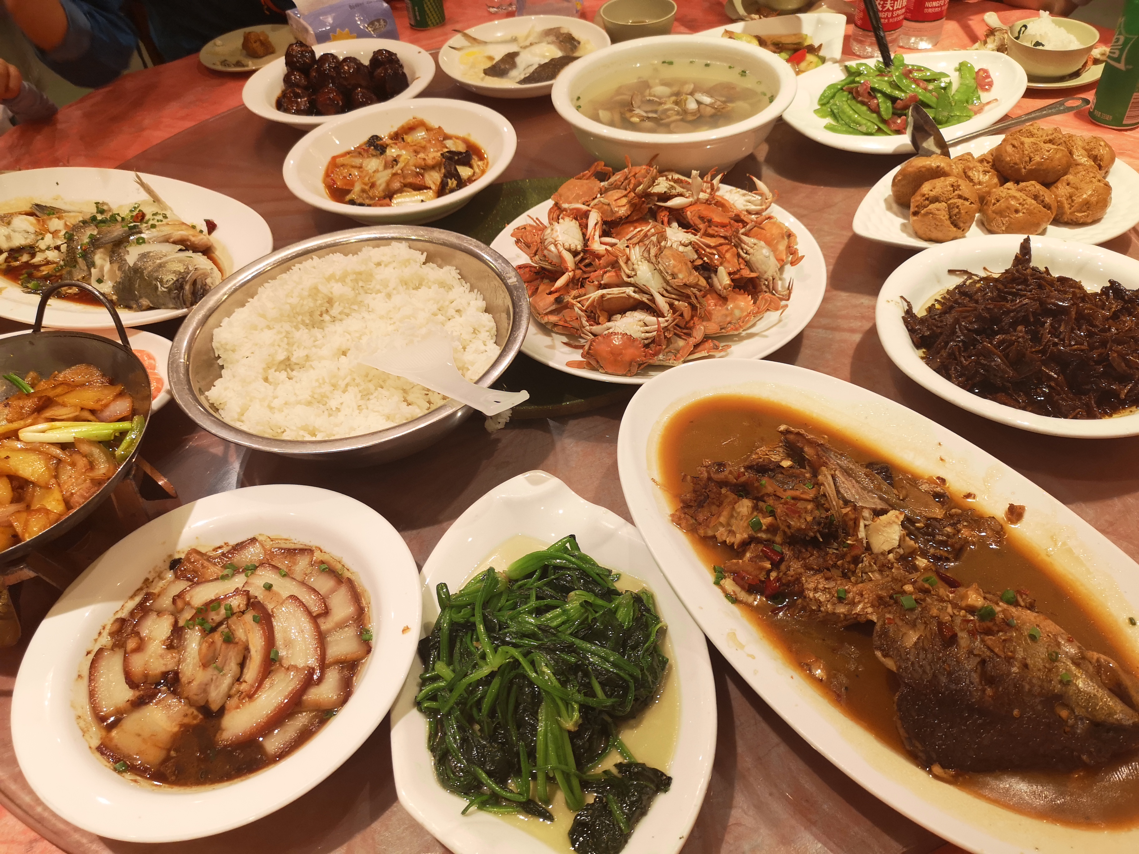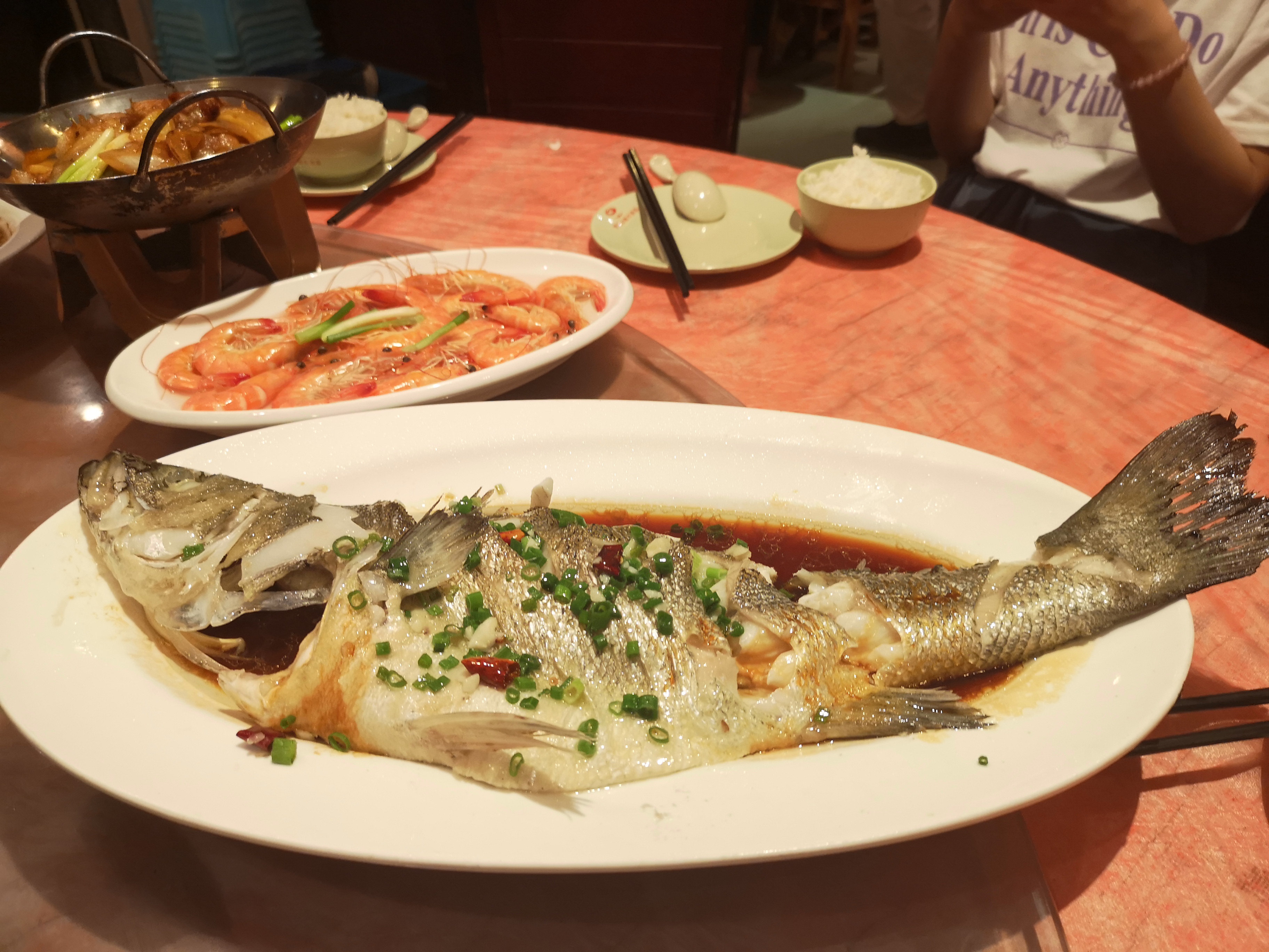 好不容易抵达了黄贤文化礼堂。第一餐,非常失望!除了几个虾和芹菜是好吃的。俺们对这顿午餐灰常不满意。鱼是臭地,老板很勉强的给我们换了一盘凉菜,蛋丁。