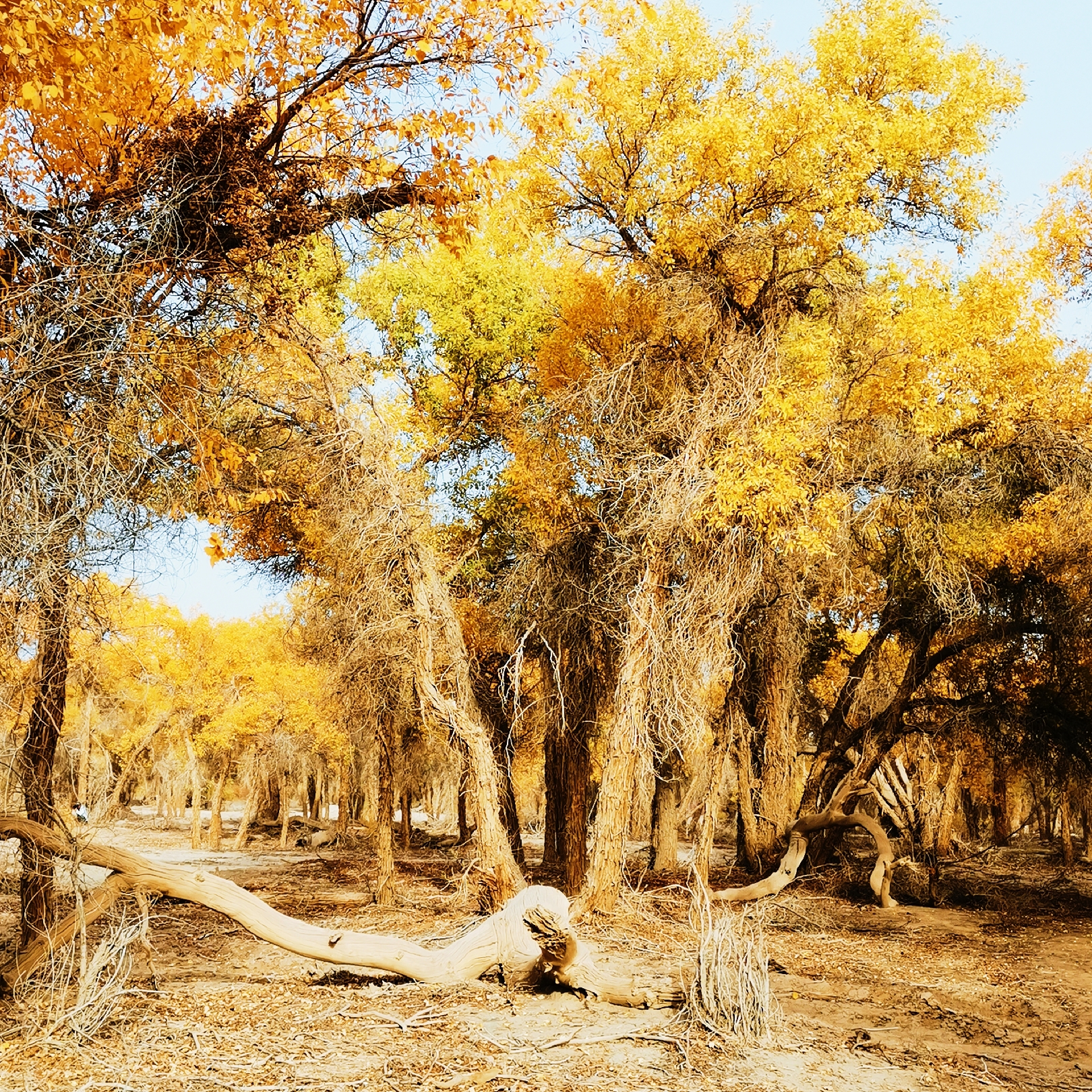 时至10日下旬,北疆已然飘雪,这里的胡杨还未完全变黄。